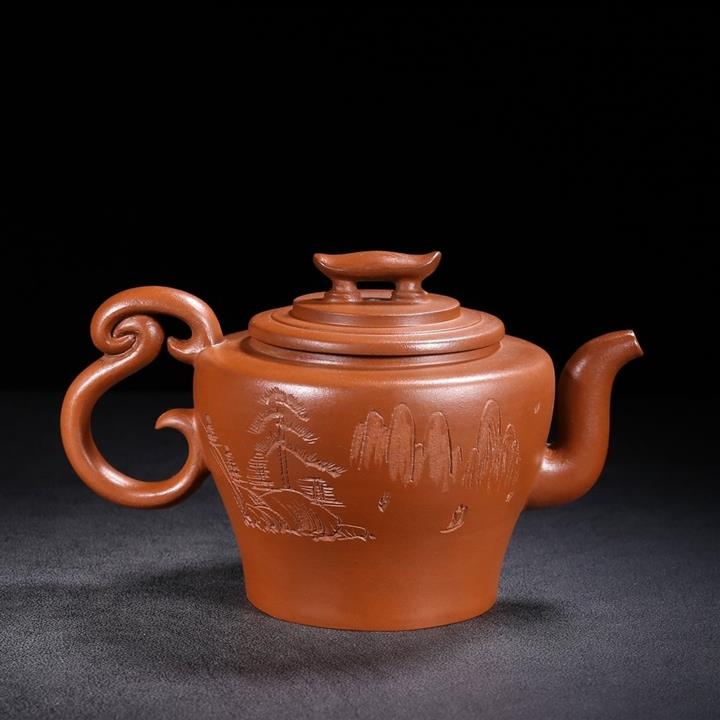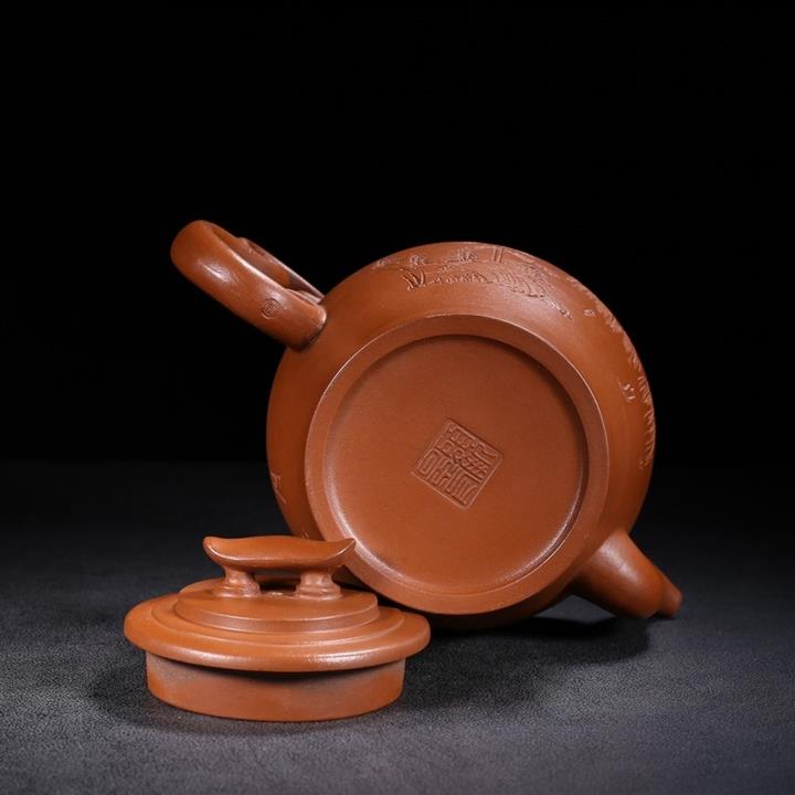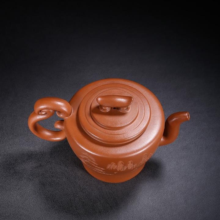 藏品·紅泥龍獅陳鳴遠仿古壺