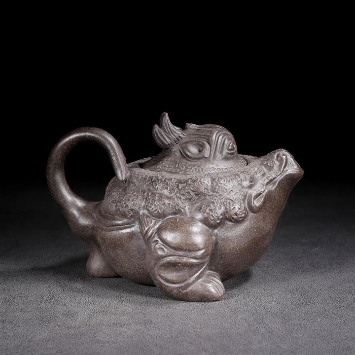 藏品·紅泥龍獅陳鳴遠仿古壺