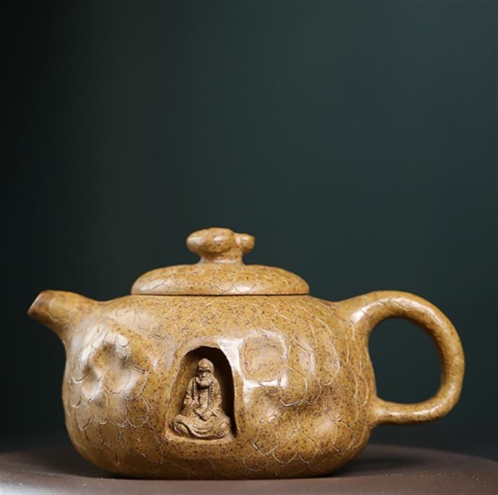 300cc原礦玄鐵石黃黑料報春茶壺POT8297