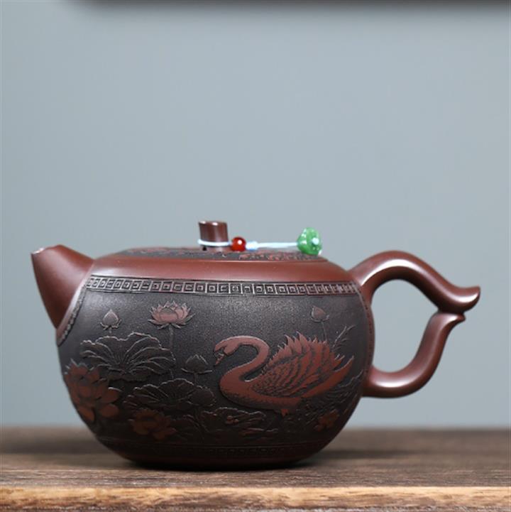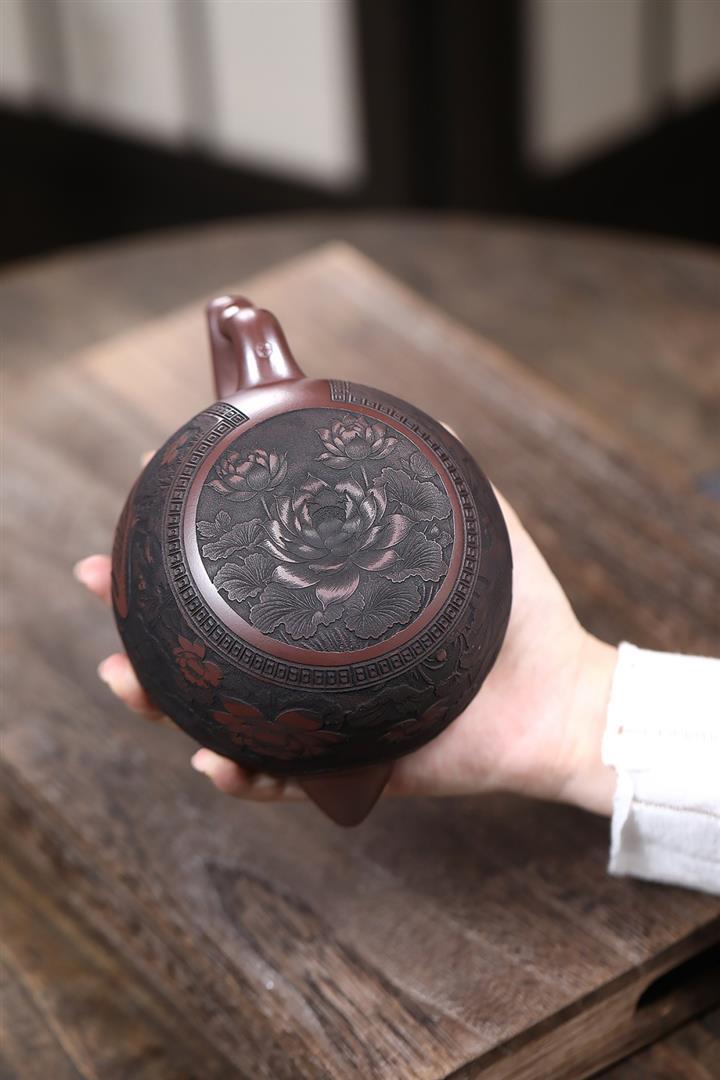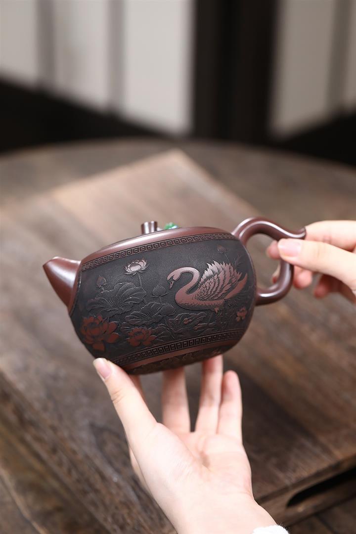 【作品介紹】此款壺形線條流暢,壺把,壺嘴,壺身壹氣呵成栩栩如生,是收藏把玩的好壺,泥料色澤古樸典雅,日久使用,漸露鋒芒,養成變化快,溫潤莊重,用其泡茶,使用的年代久,壺身就溫潤,泡出來的茶湯也就醇郁芳馨。