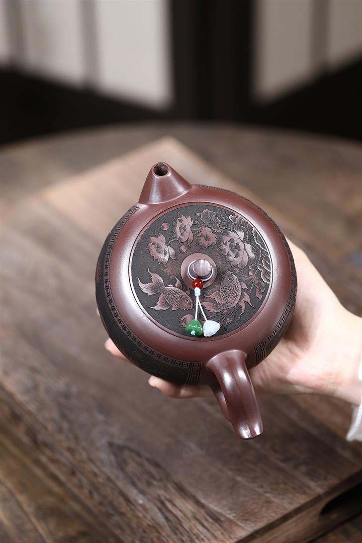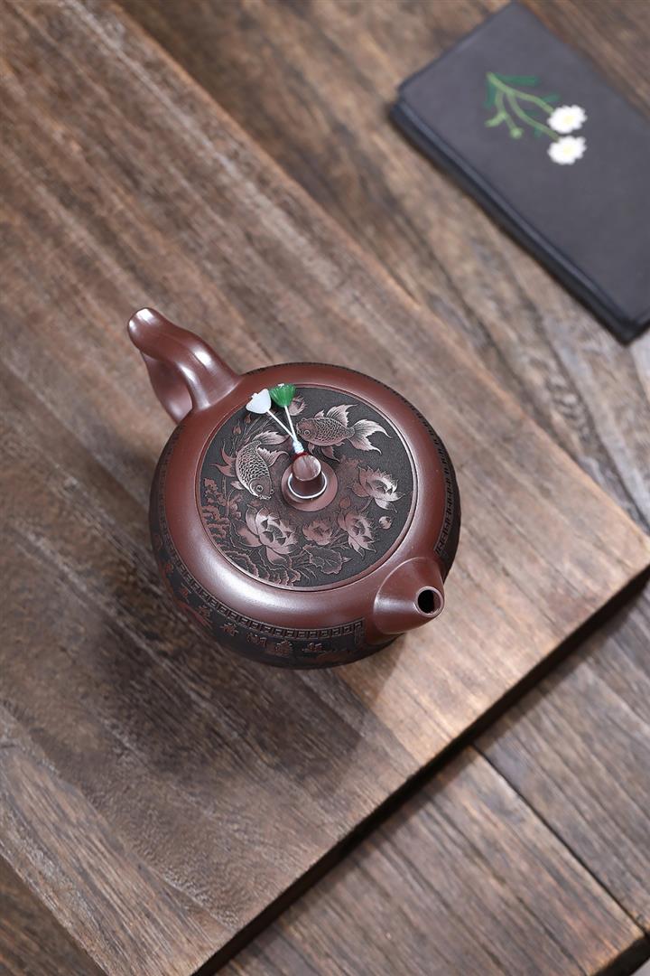 600cc原礦古紅泥荷運連連蘋果壺POT8325