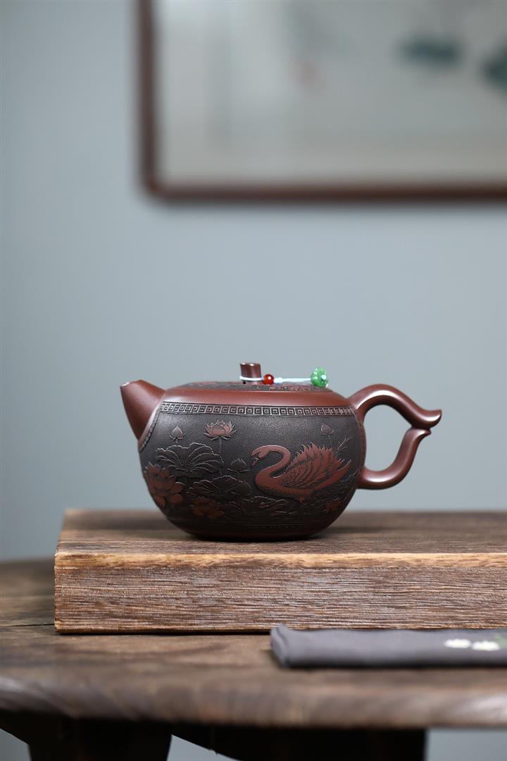 190cc原礦段泥仙鶴茄瓜泥繪茶壺POT8356