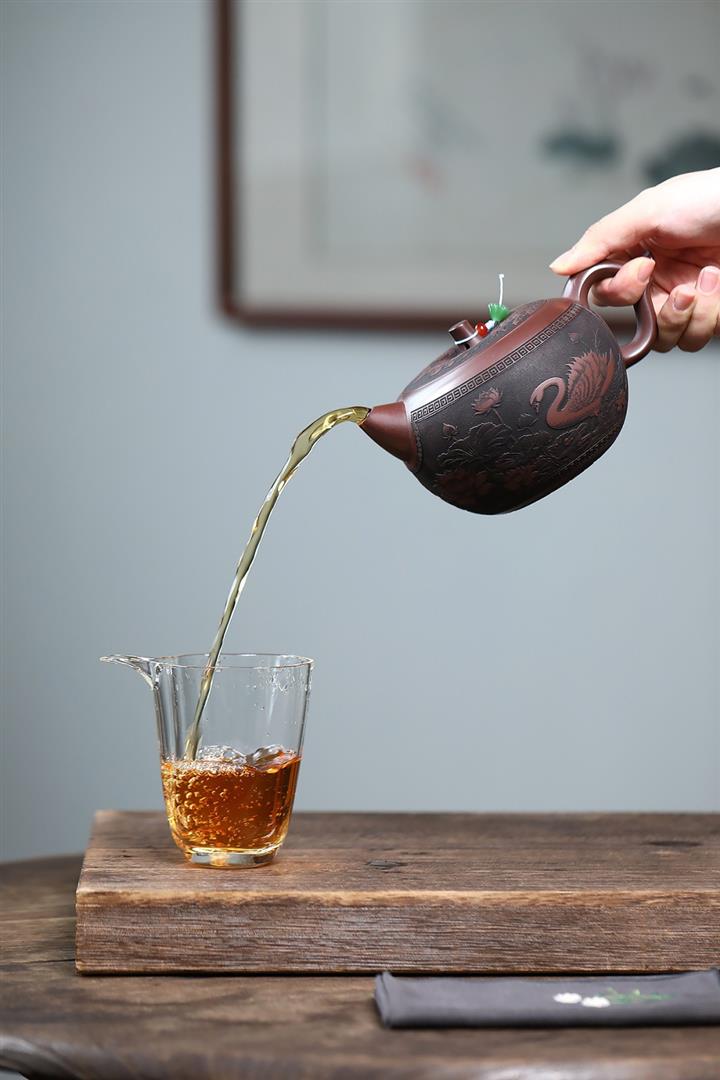【泥料特點】砂土氣重,似淳實農民,日久使用,漸露鋒芒,養成變化,溫潤莊重。紫砂是壹種雙重氣孔結構的多孔性材質,氣孔微細,密度高。用紫砂壺沏茶,不失原味,且香不渙散,得茶之真香真味。紫砂使用越久,壺身色澤越發光亮照人,氣韻溫雅。紫砂壺長久使用器身會因撫摸擦拭,變得越發溫潤光澤。