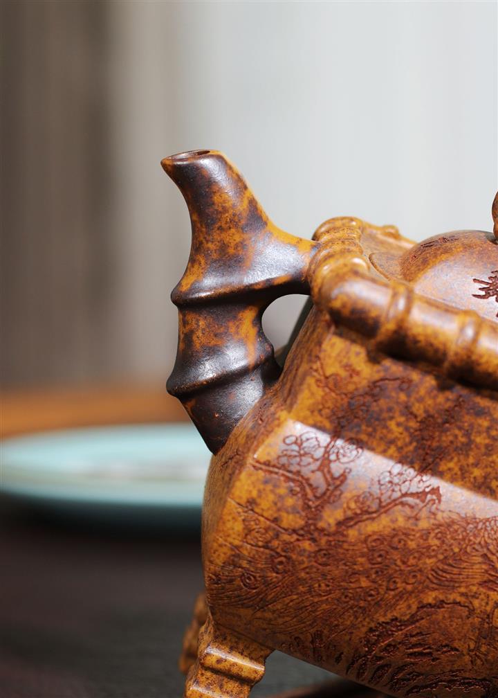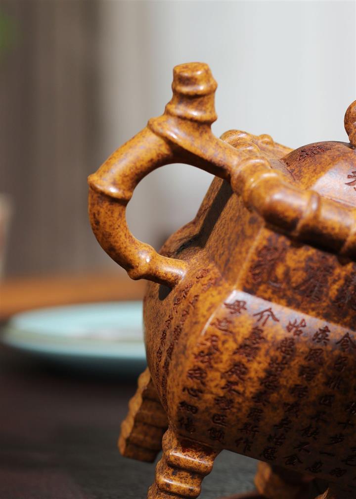 260cc原礦石黃泥六方蓮瓣刻繪茶壺POT8355