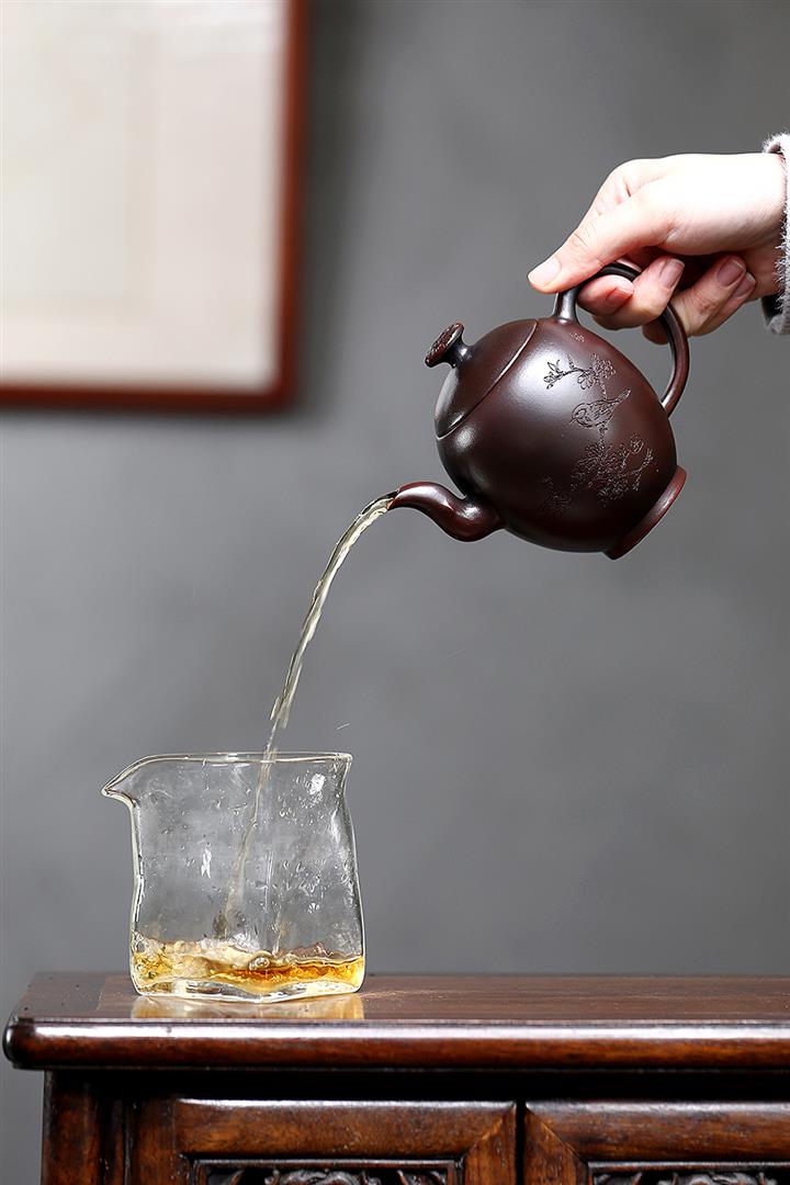 【泥料特點】砂土氣重,似淳實農民,日久使用,漸露鋒芒,養成變化,溫潤莊重。紫砂是壹種雙重氣孔結構的多孔性材質,氣孔微細,密度高。用紫砂壺沏茶,不失原味,且香不渙散,得茶之真香真味。紫砂使用越久,壺身色澤越發光亮照人,氣韻溫雅。紫砂壺長久使用器身會因撫摸擦拭,變得越發溫潤光澤。