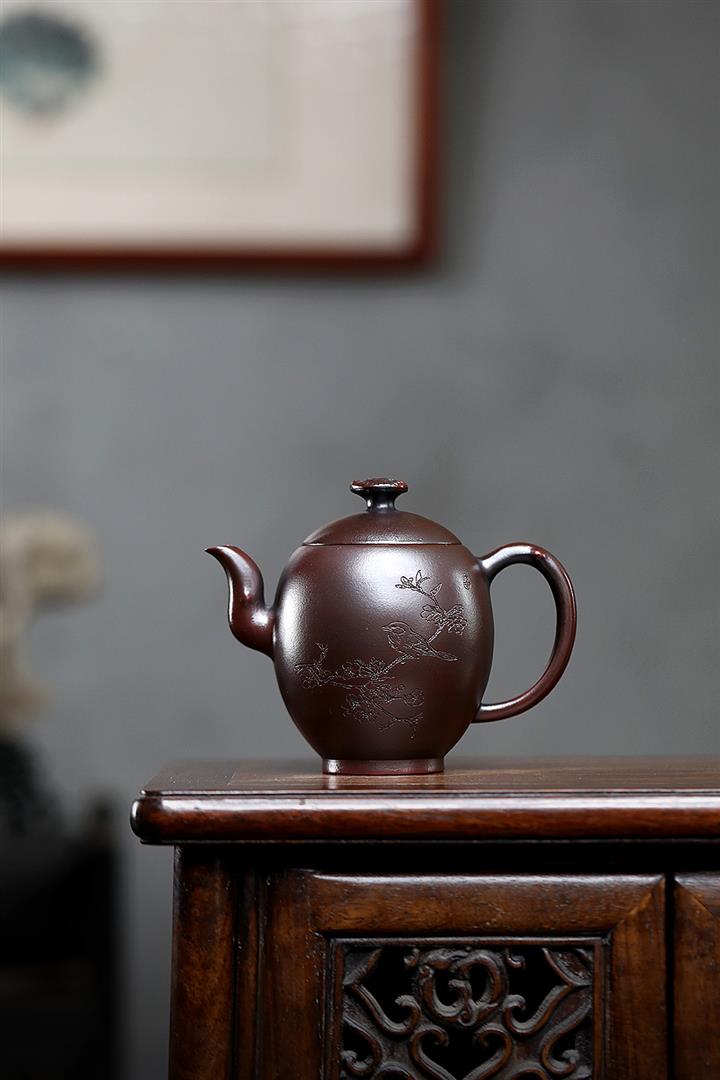 【作品介紹】此款壺形線條流暢,壺把,壺嘴,壺身壹氣呵成栩栩如生,是收藏把玩的好壺,泥料色澤古樸典雅,日久使用,漸露鋒芒,養成變化快,溫潤莊重,用其泡茶,使用的年代久,壺身就溫潤,泡出來的茶湯也就醇郁芳馨。