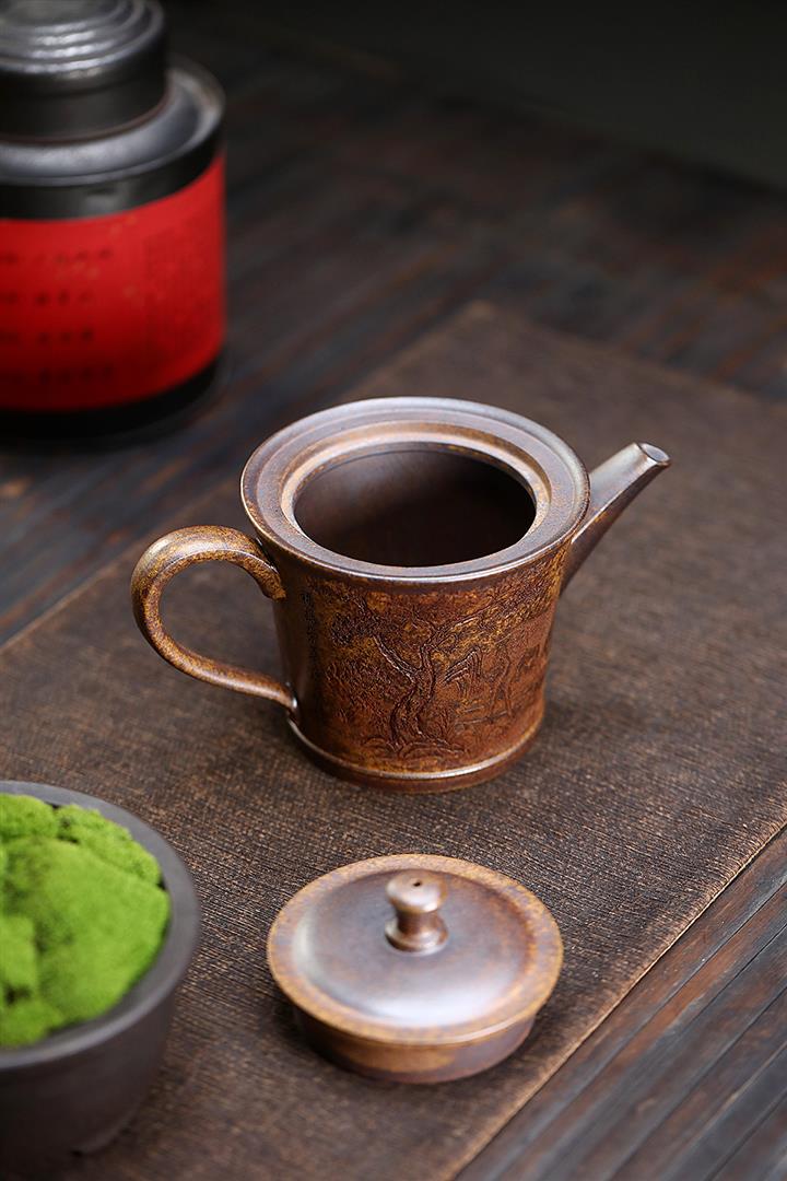 【作品介紹】此款壺形線條流暢,壺把,壺嘴,壺身壹氣呵成栩栩如生,是收藏把玩的好壺,泥料色澤古樸典雅,日久使用,漸露鋒芒,養成變化快,溫潤莊重,用其泡茶,使用的年代久,壺身就溫潤,泡出來的茶湯也就醇郁芳馨。