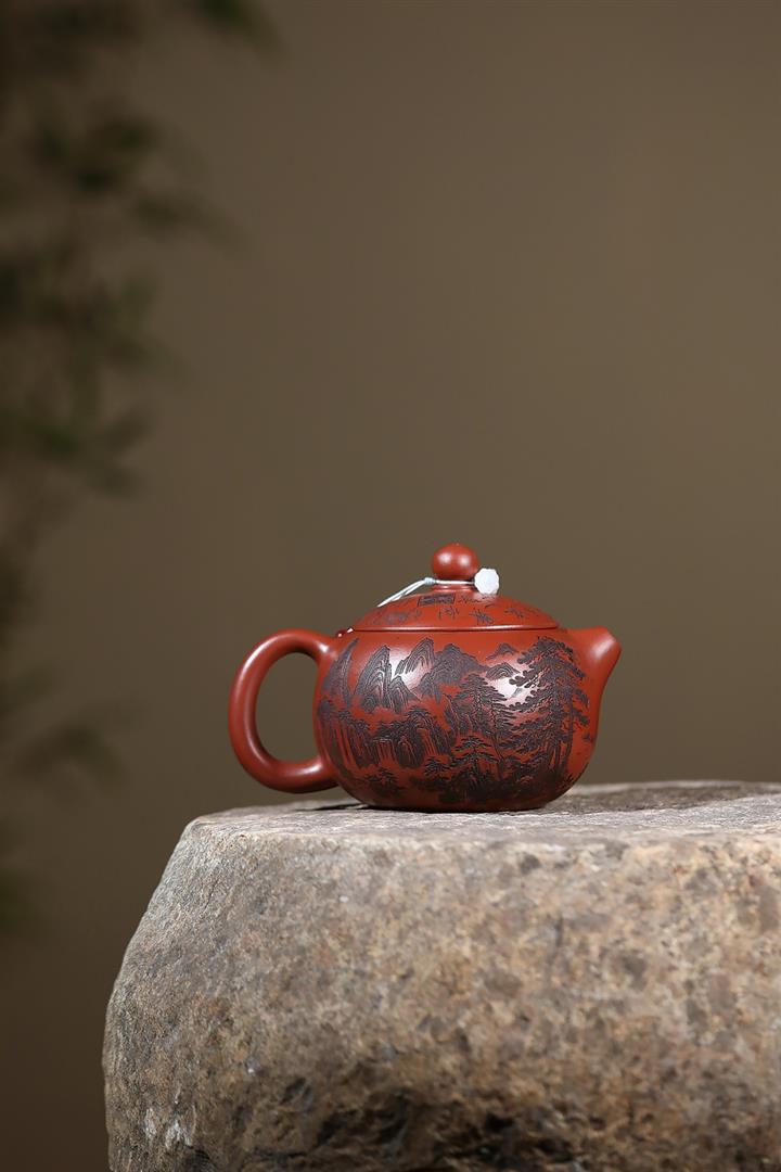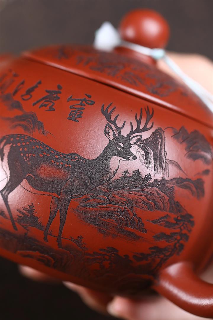 180cc原礦綠泥牛蓋刻繪茶壺POT8351