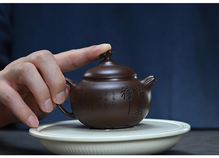 200cc原礦文革紫泥茄瓜微刻茶壺POT8346