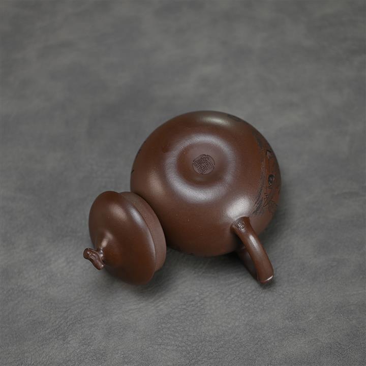 180cc原礦綠泥牛蓋刻繪茶壺POT8351