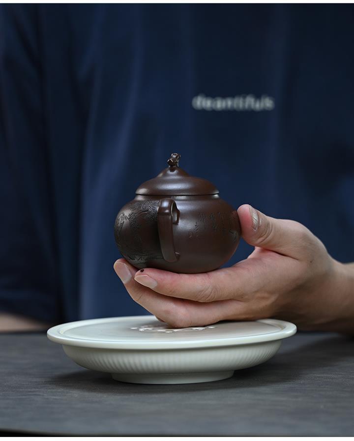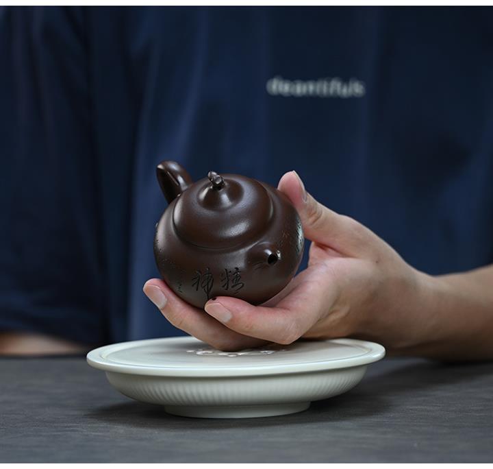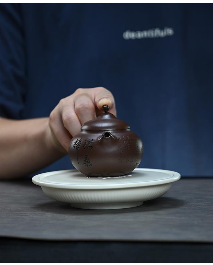 【作品介紹】此款壺形線條流暢,壺把,壺嘴,壺身壹氣呵成栩栩如生,是收藏把玩的好壺,泥料色澤古樸典雅,日久使用,漸露鋒芒,養成變化快,溫潤莊重,用其泡茶,使用的年代久,壺身就溫潤,泡出來的茶湯也就醇郁芳馨。