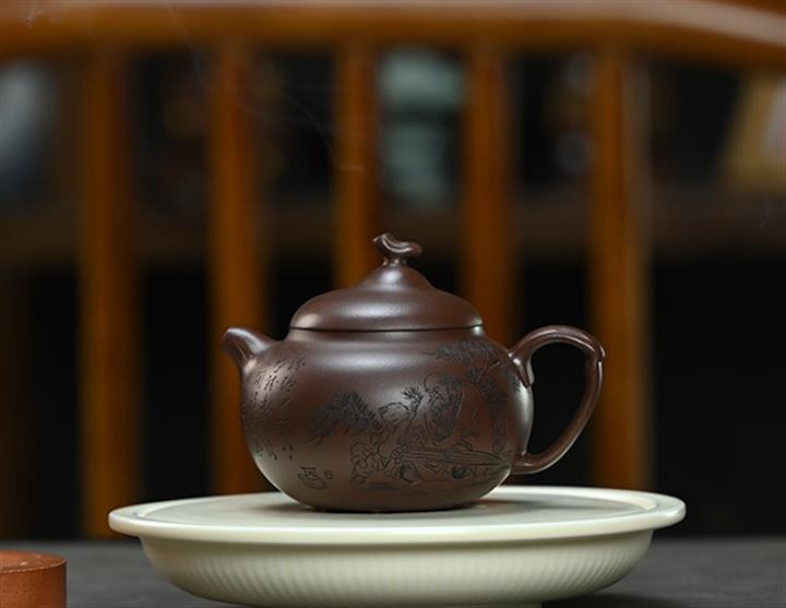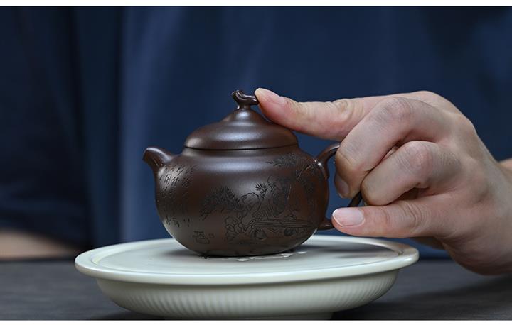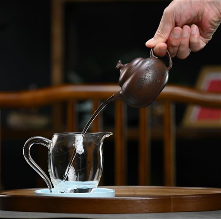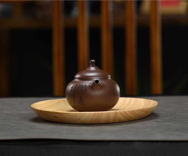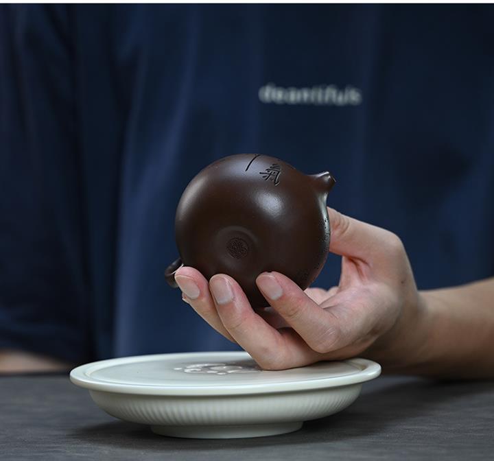 【泥料特點】砂土氣重,似淳實農民,日久使用,漸露鋒芒,養成變化,溫潤莊重。紫砂是壹種雙重氣孔結構的多孔性材質,氣孔微細,密度高。用紫砂壺沏茶,不失原味,且香不渙散,得茶之真香真味。紫砂使用越久,壺身色澤越發光亮照人,氣韻溫雅。紫砂壺長久使用器身會因撫摸擦拭,變得越發溫潤光澤。