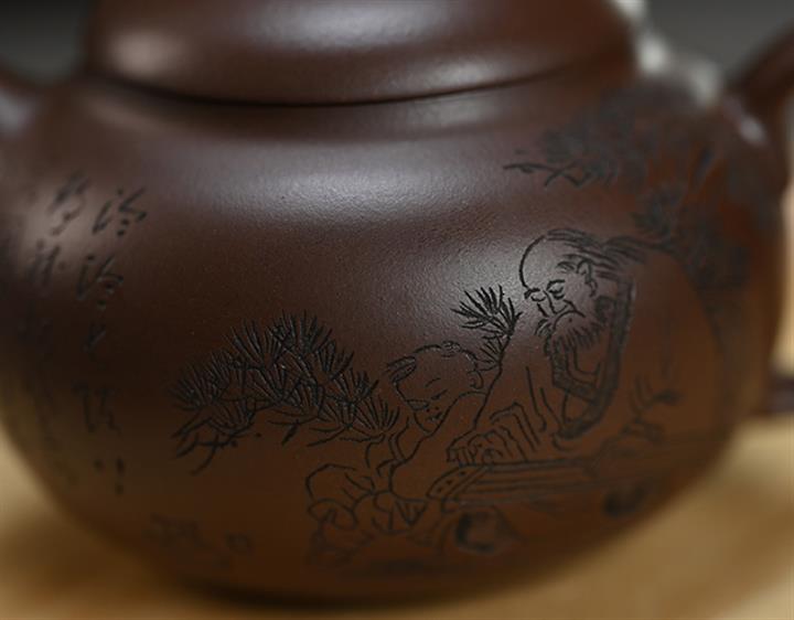 180cc原礦綠泥容天刻繪茶壺POT8353