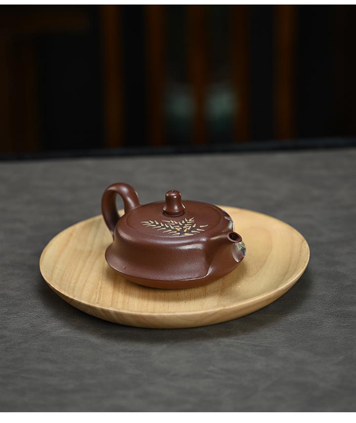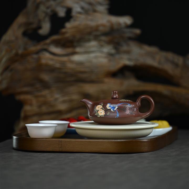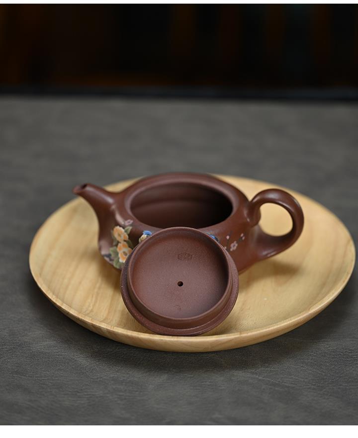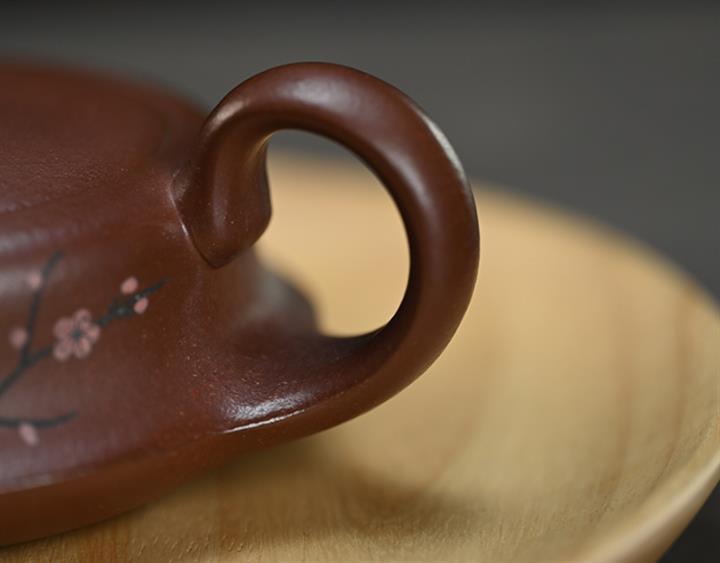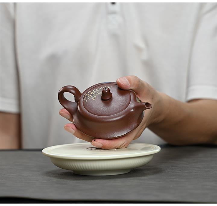 【泥料特點】砂土氣重,似淳實農民,日久使用,漸露鋒芒,養成變化,溫潤莊重。紫砂是壹種雙重氣孔結構的多孔性材質,氣孔微細,密度高。用紫砂壺沏茶,不失原味,且香不渙散,得茶之真香真味。紫砂使用越久,壺身色澤越發光亮照人,氣韻溫雅。紫砂壺長久使用器身會因撫摸擦拭,變得越發溫潤光澤。