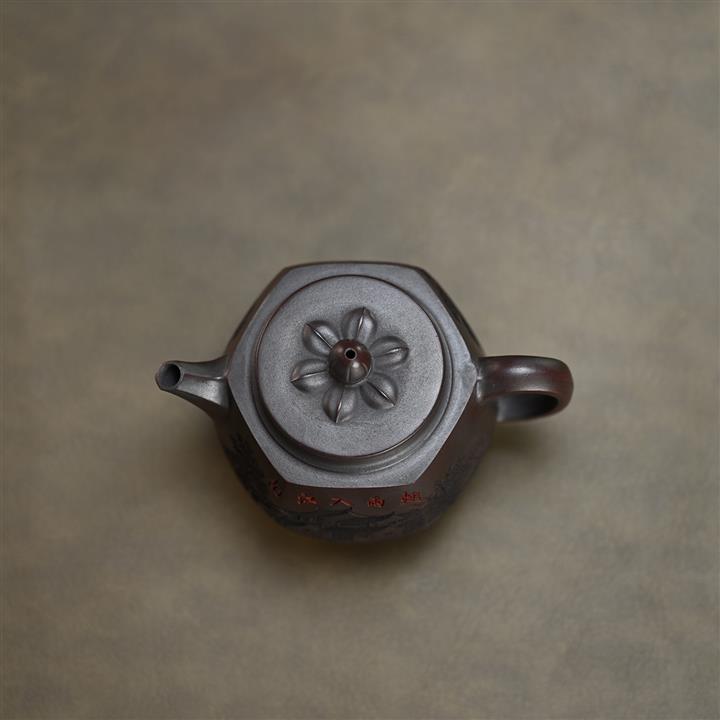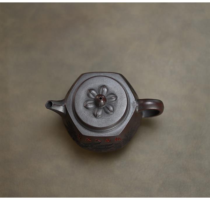 260cc原礦石黃泥六方蓮瓣刻繪茶壺POT8355