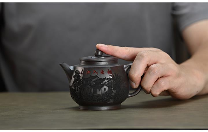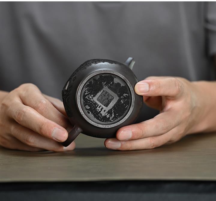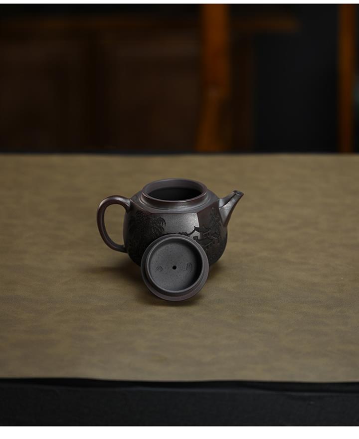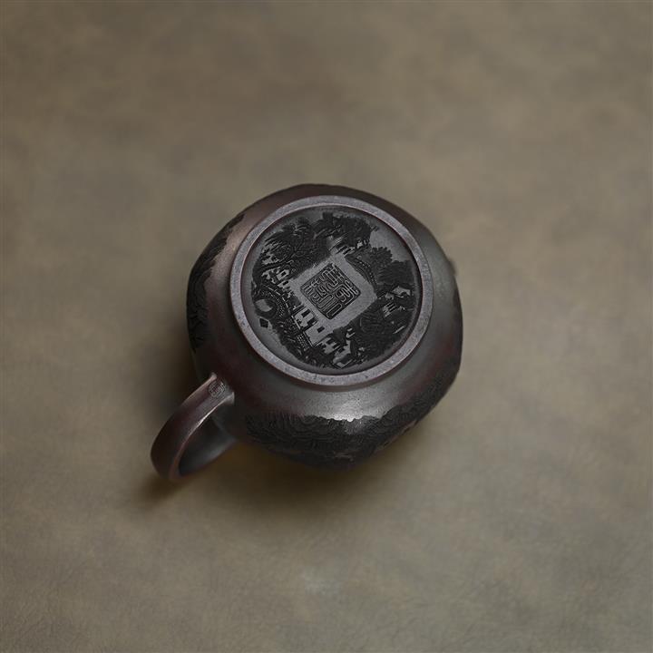 210cc原礦綠泥百福納財刻繪茶壺POT8363