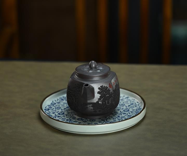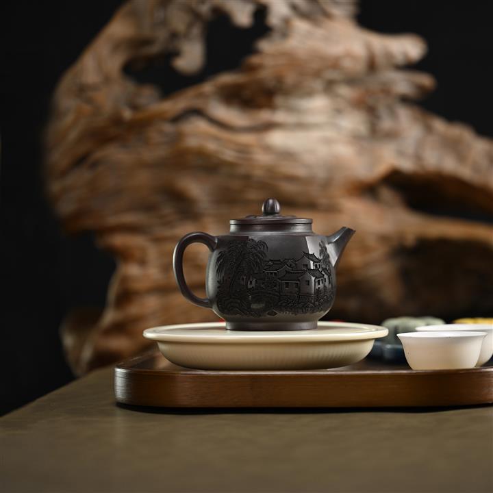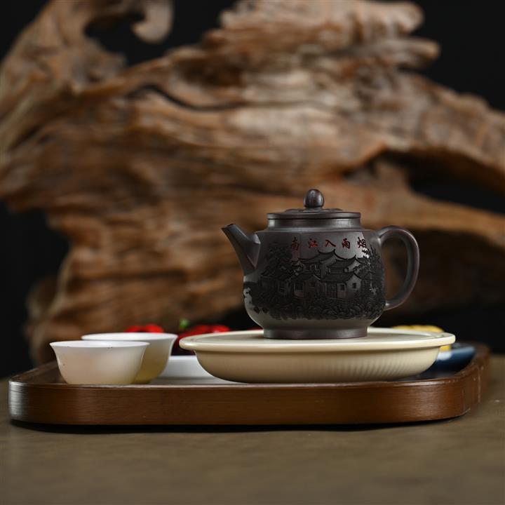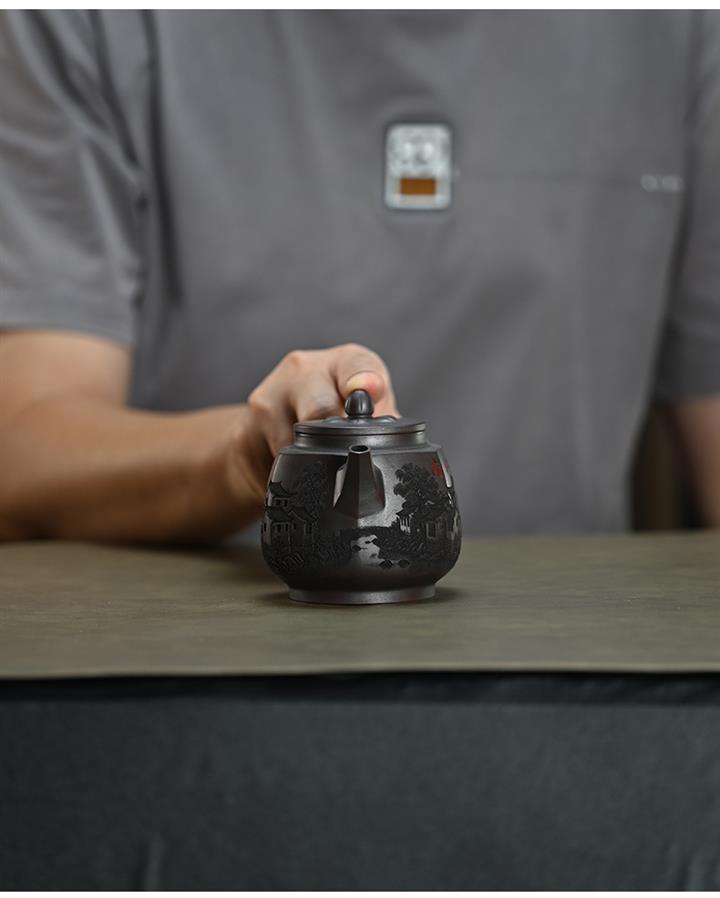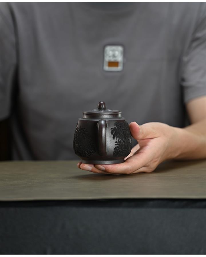 190cc原礦段泥寒江泥繪茶壺POT8357