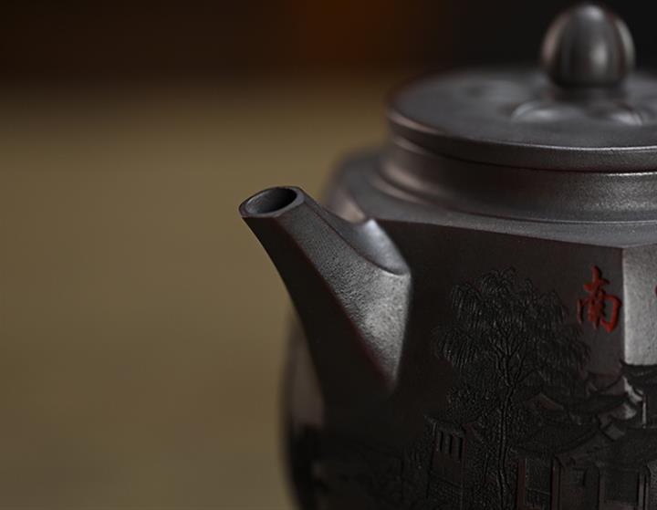 【作品介紹】此款壺形線條流暢,壺把,壺嘴,壺身壹氣呵成栩栩如生,是收藏把玩的好壺,泥料色澤古樸典雅,日久使用,漸露鋒芒,養成變化快,溫潤莊重,用其泡茶,使用的年代久,壺身就溫潤,泡出來的茶湯也就醇郁芳馨。