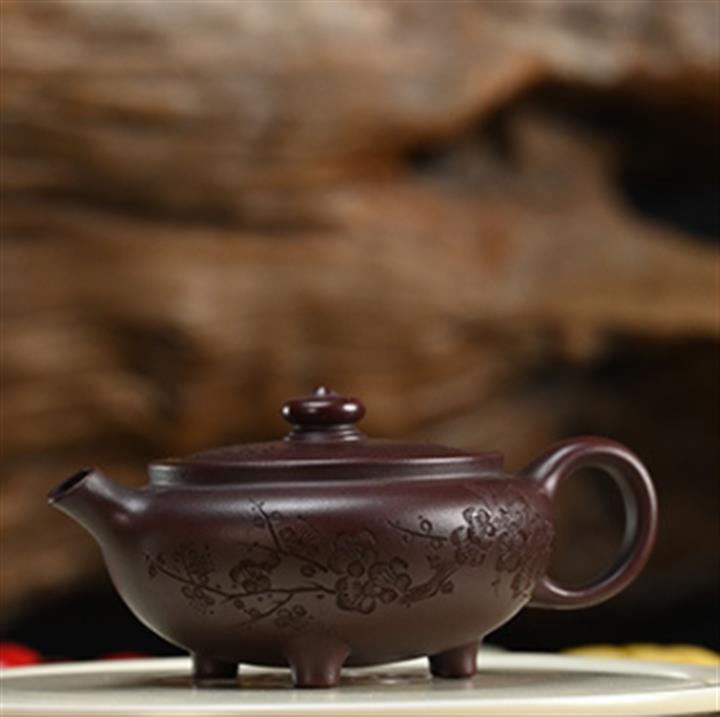 【泥料特點】砂土氣重,似淳實農民,日久使用,漸露鋒芒,養成變化,溫潤莊重。紫砂是壹種雙重氣孔結構的多孔性材質,氣孔微細,密度高。用紫砂壺沏茶,不失原味,且香不渙散,得茶之真香真味。紫砂使用越久,壺身色澤越發光亮照人,氣韻溫雅。紫砂壺長久使用器身會因撫摸擦拭,變得越發溫潤光澤。