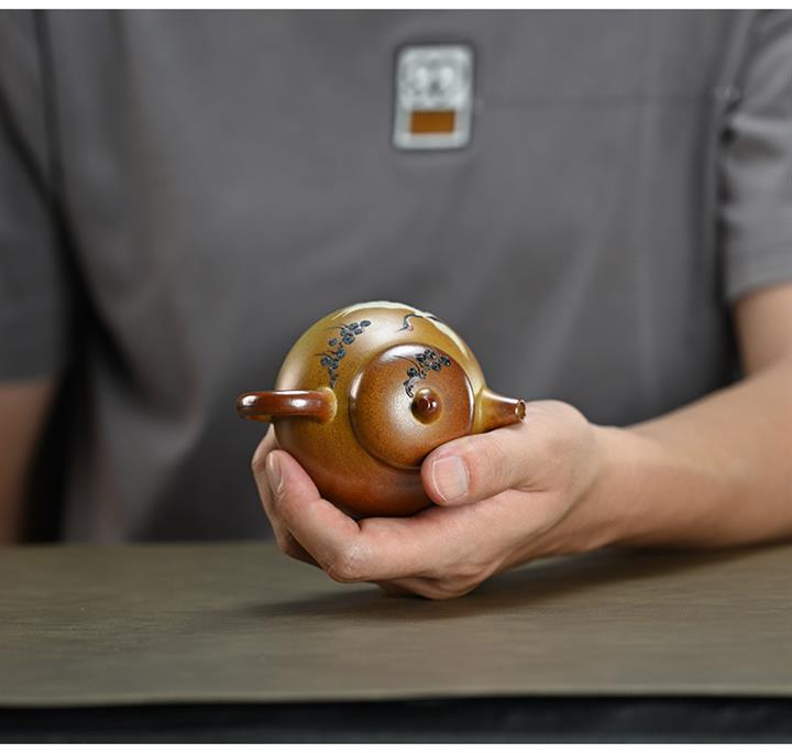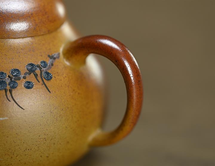 180cc原礦石黃泥逸瓢刻繪茶壺POT8361