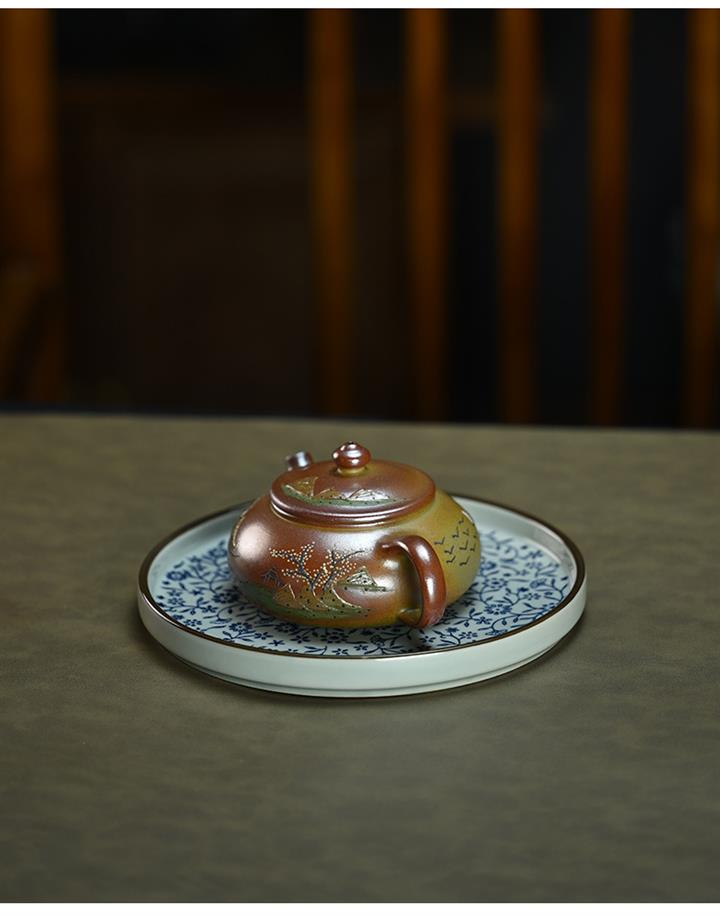 【泥料特點】砂土氣重,似淳實農民,日久使用,漸露鋒芒,養成變化,溫潤莊重。紫砂是壹種雙重氣孔結構的多孔性材質,氣孔微細,密度高。用紫砂壺沏茶,不失原味,且香不渙散,得茶之真香真味。紫砂使用越久,壺身色澤越發光亮照人,氣韻溫雅。紫砂壺長久使用器身會因撫摸擦拭,變得越發溫潤光澤。