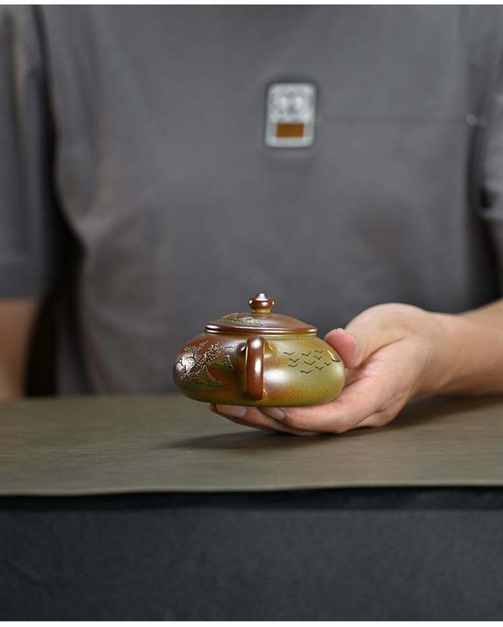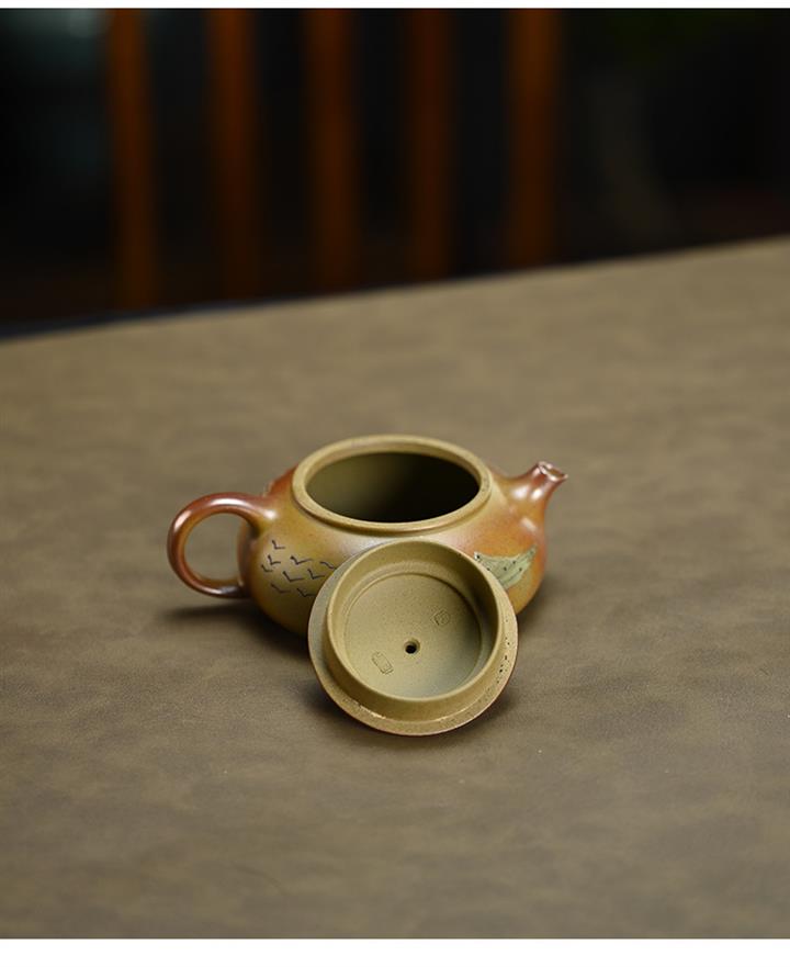 180cc原礦石黃泥逸瓢刻繪茶壺POT8361