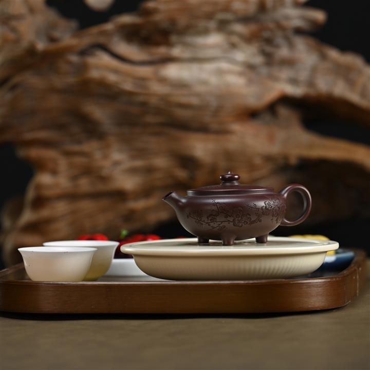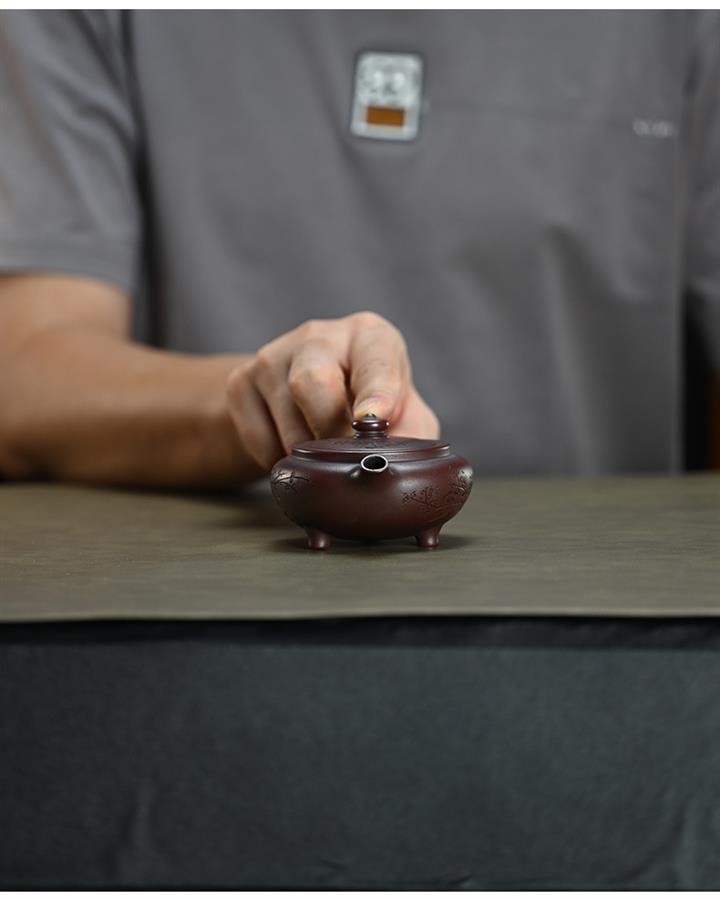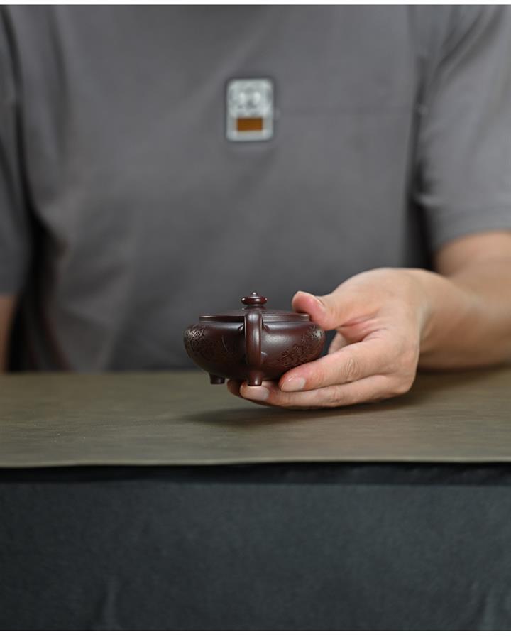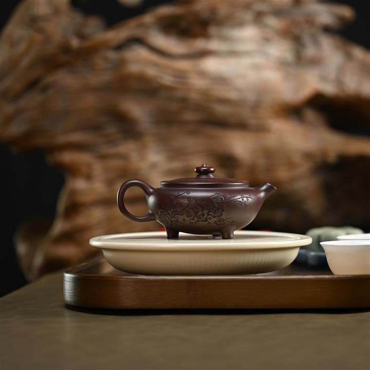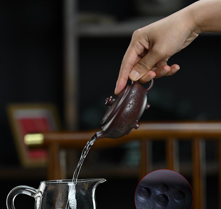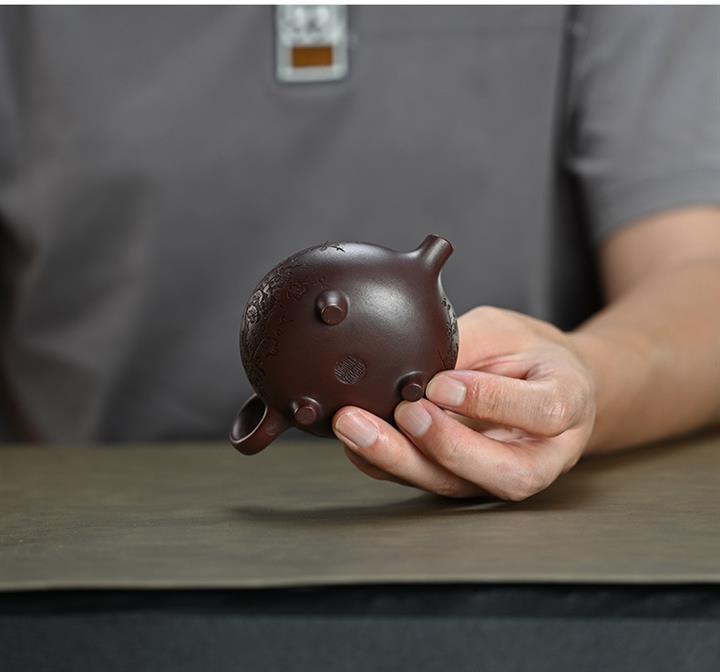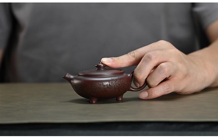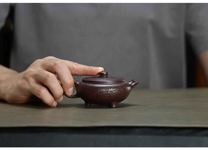 【泥料特點】砂土氣重,似淳實農民,日久使用,漸露鋒芒,養成變化,溫潤莊重。紫砂是壹種雙重氣孔結構的多孔性材質,氣孔微細,密度高。用紫砂壺沏茶,不失原味,且香不渙散,得茶之真香真味。紫砂使用越久,壺身色澤越發光亮照人,氣韻溫雅。紫砂壺長久使用器身會因撫摸擦拭,變得越發溫潤光澤。