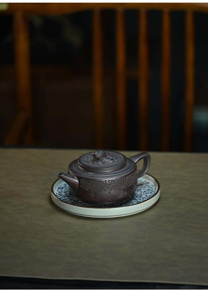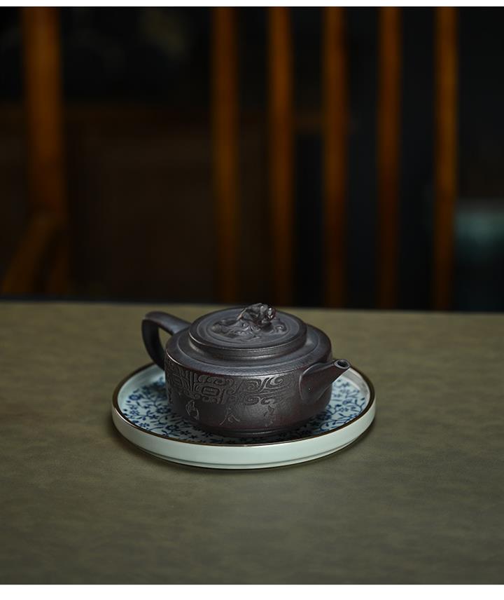 300cc原礦古紅泥周盤魚化龍刻繪茶壺POT8362