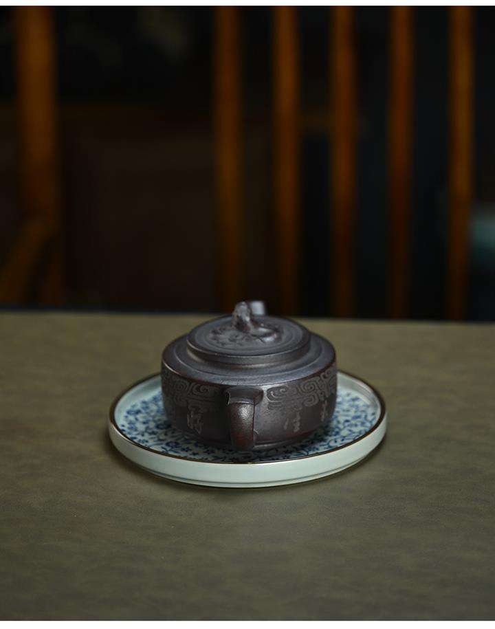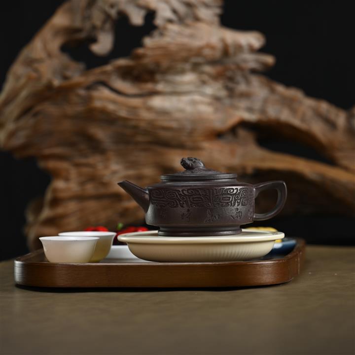 210cc原礦綠泥百福納財刻繪茶壺POT8363