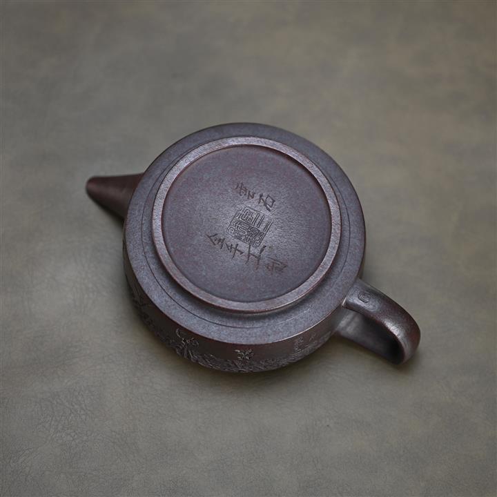 290cc原礦古銅泥彩刻江山攬勝茶壺POT8383