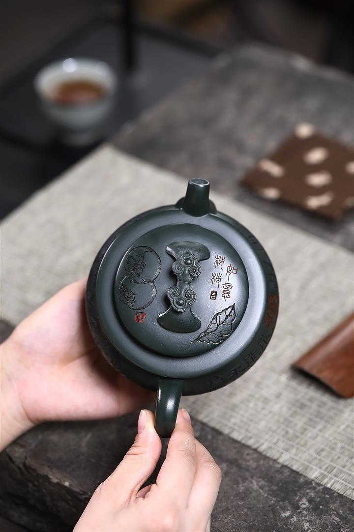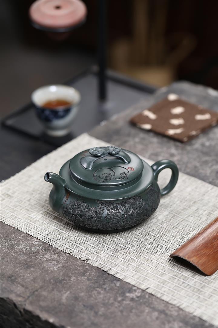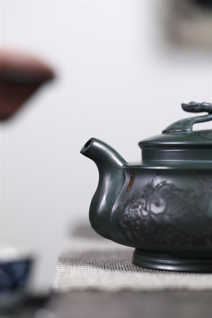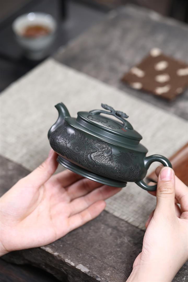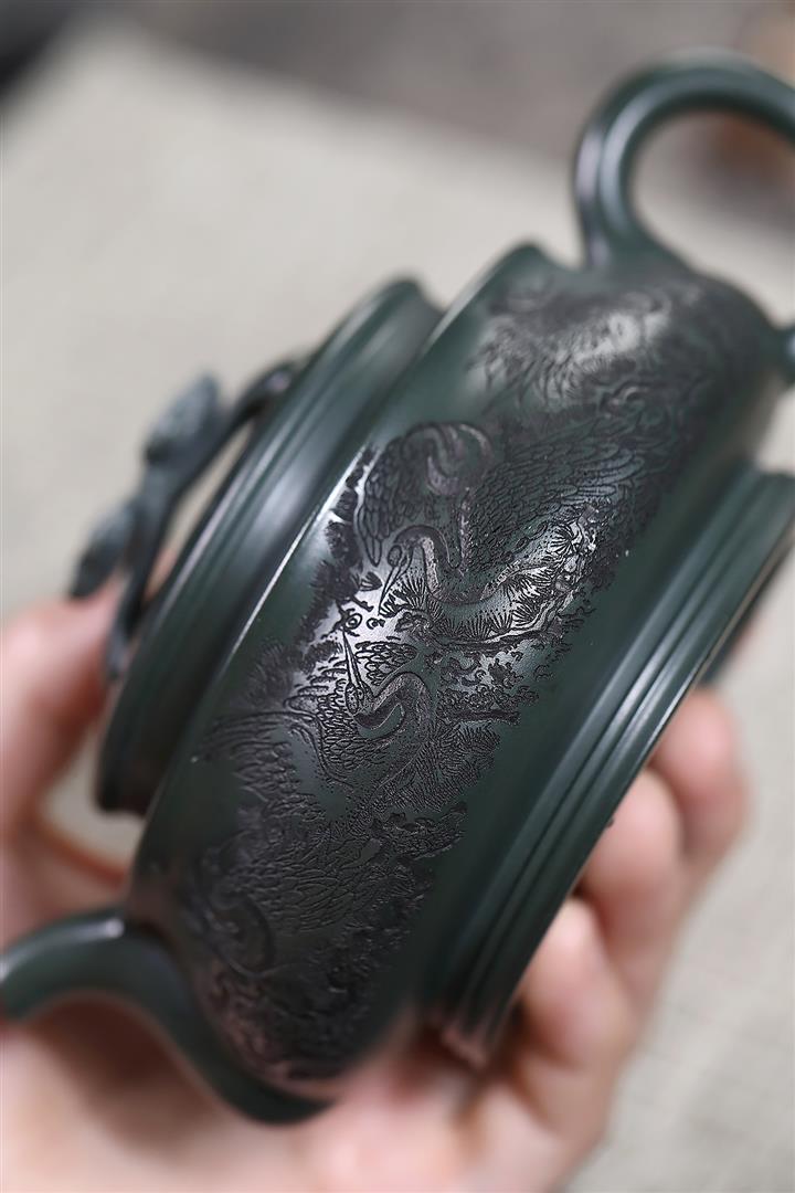 320cc稀有墨綠泥仙鶴延年匠心茶壺POT8367
