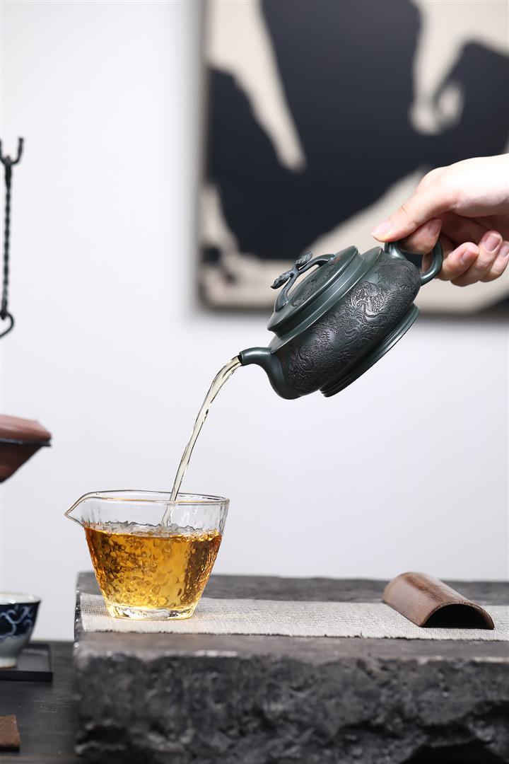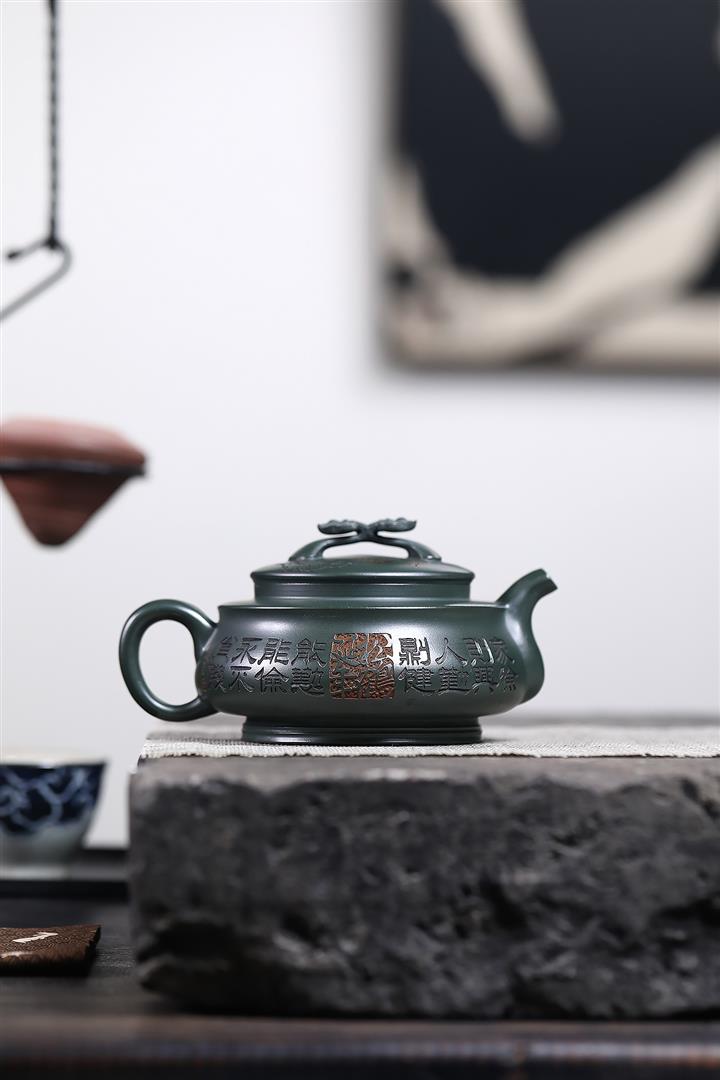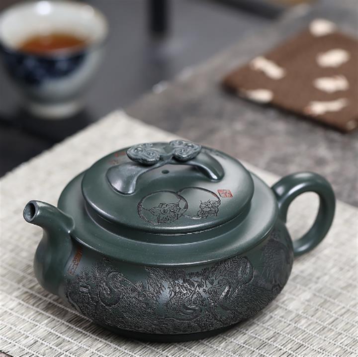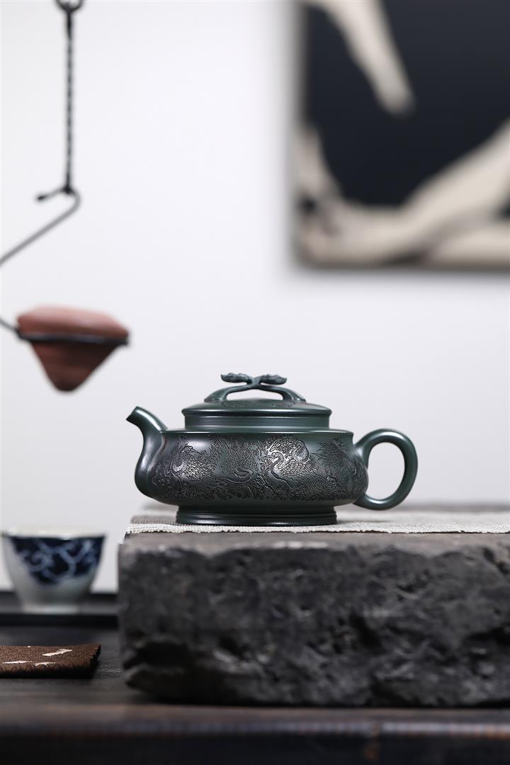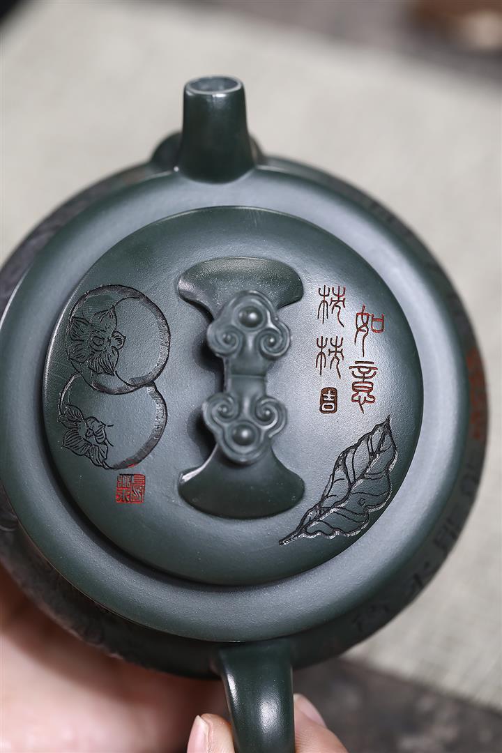 320cc稀有墨綠泥仙鶴延年匠心茶壺POT8367
