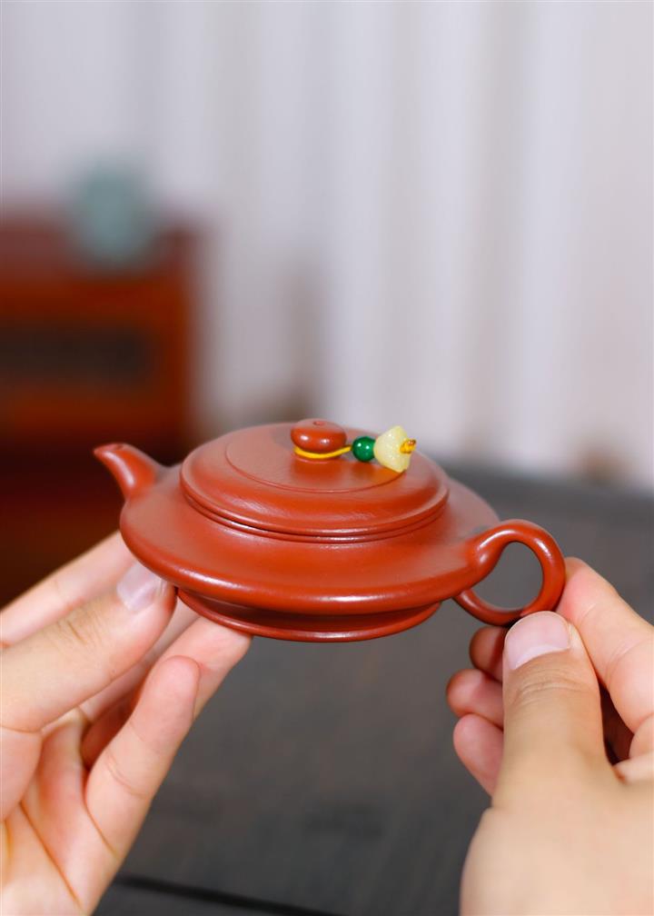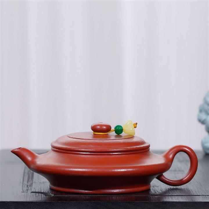 90cc原礦皺皮朱泥小品虛扁茶壺POT8375