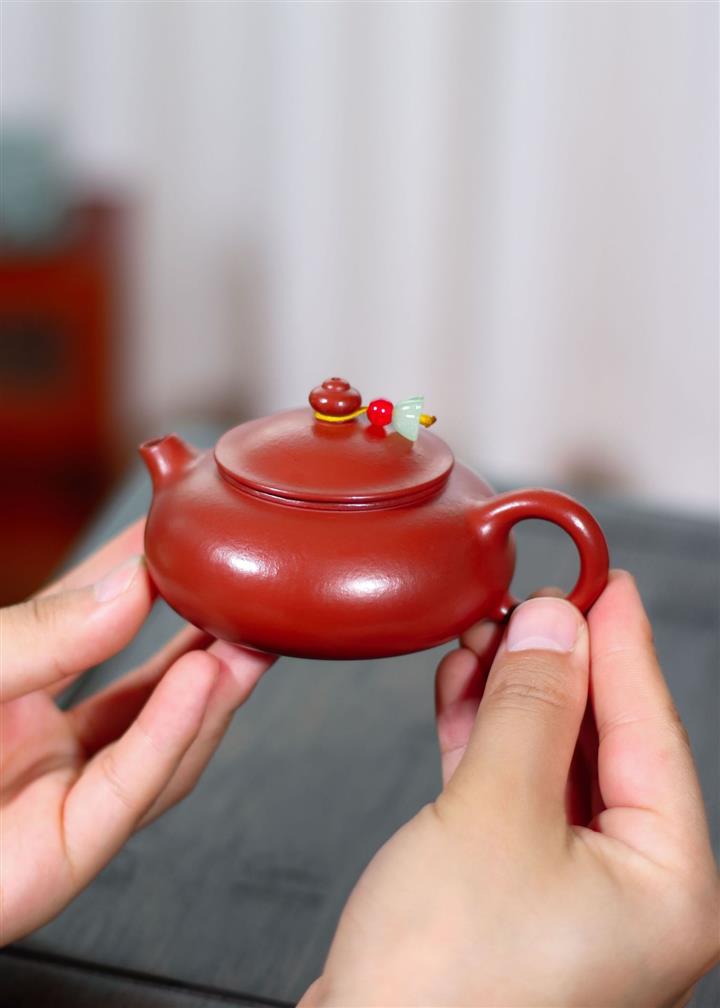【泥料特點】砂土氣重,似淳實農民,日久使用,漸露鋒芒,養成變化,溫潤莊重。紫砂是壹種雙重氣孔結構的多孔性材質,氣孔微細,密度高。用紫砂壺沏茶,不失原味,且香不渙散,得茶之真香真味。紫砂使用越久,壺身色澤越發光亮照人,氣韻溫雅。紫砂壺長久使用器身會因撫摸擦拭,變得越發溫潤光澤。