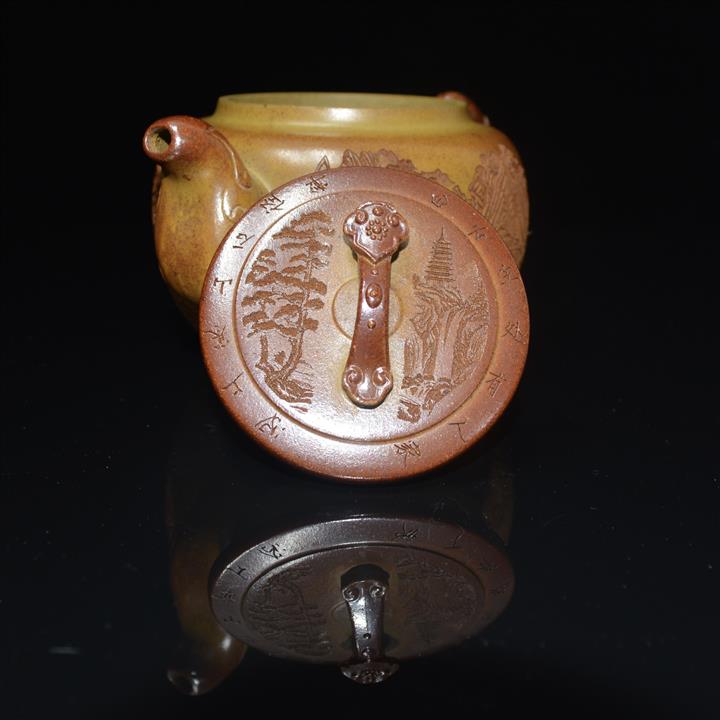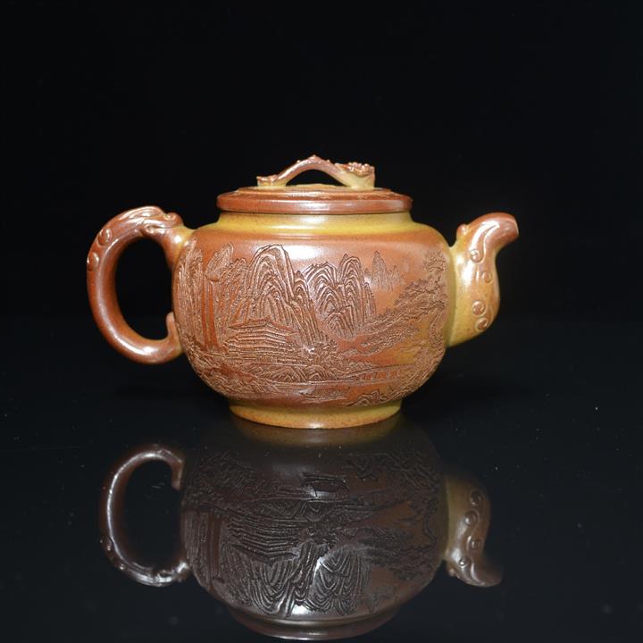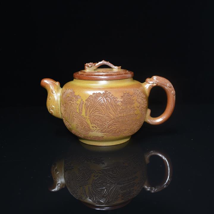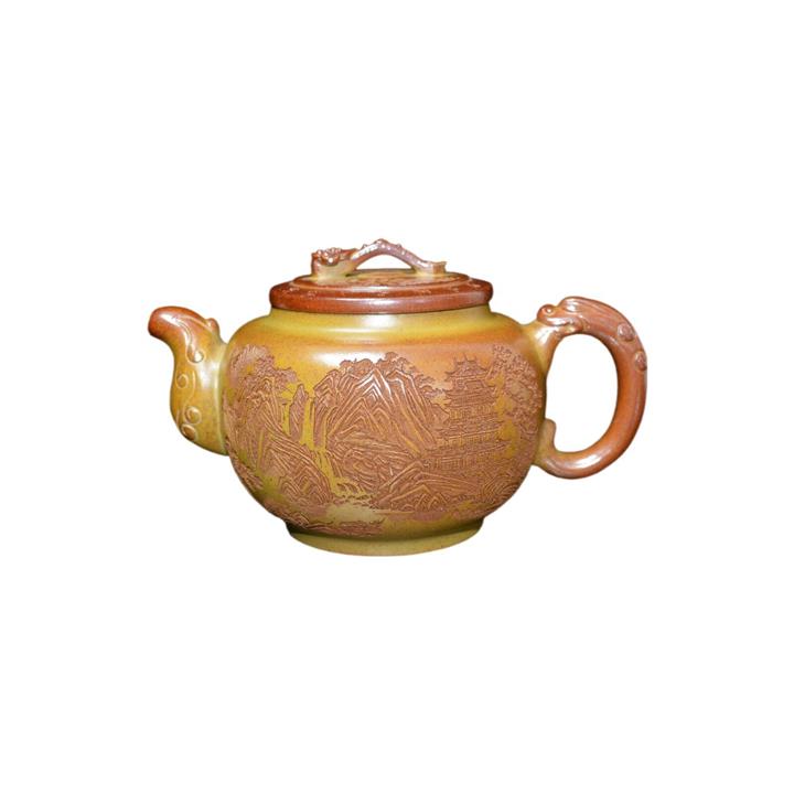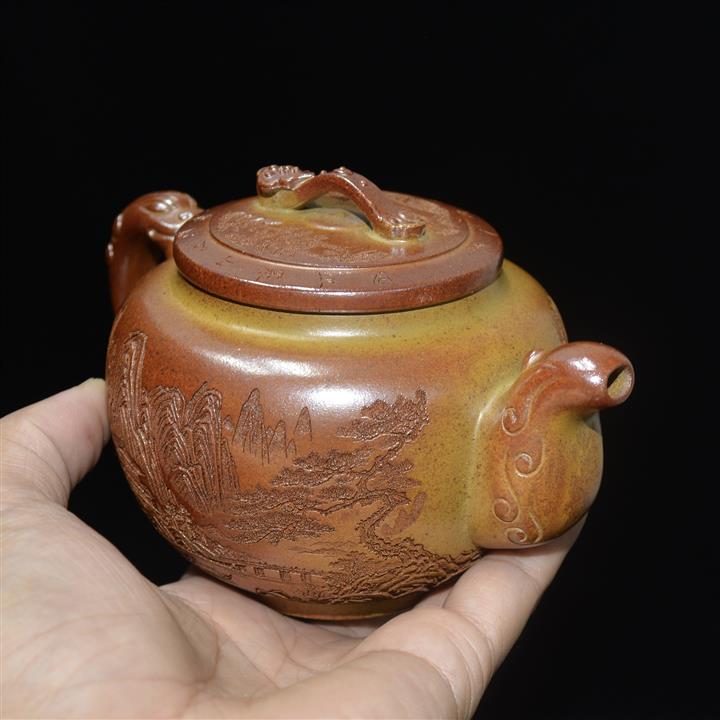 460cc原礦石紅泥滿刻鐘鳴山河茶壺POT8402