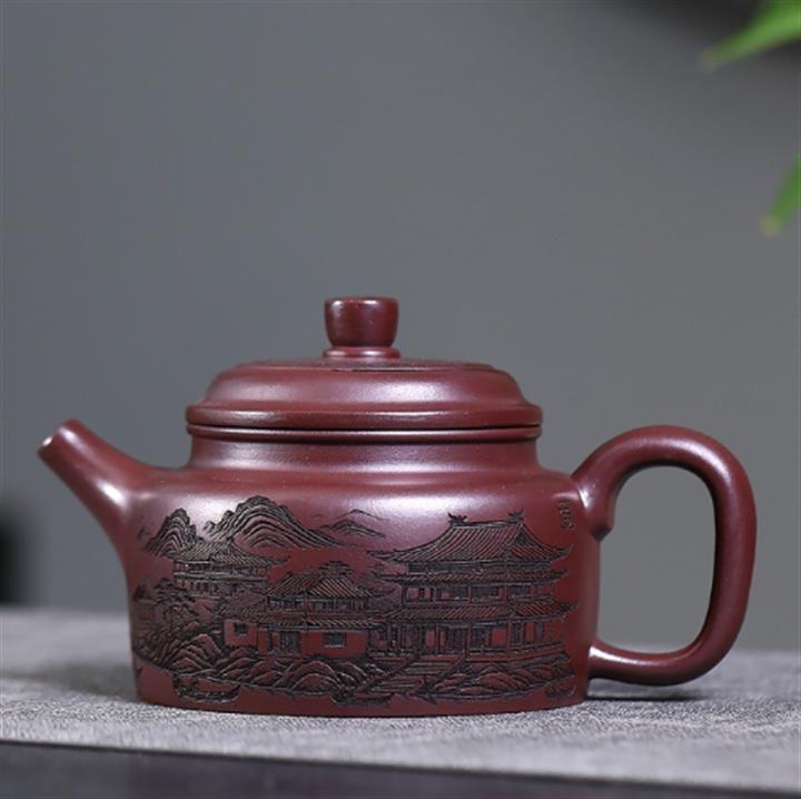 280cc原礦石紅泥滿刻松趣丹霞漢瓦茶壺POT8403