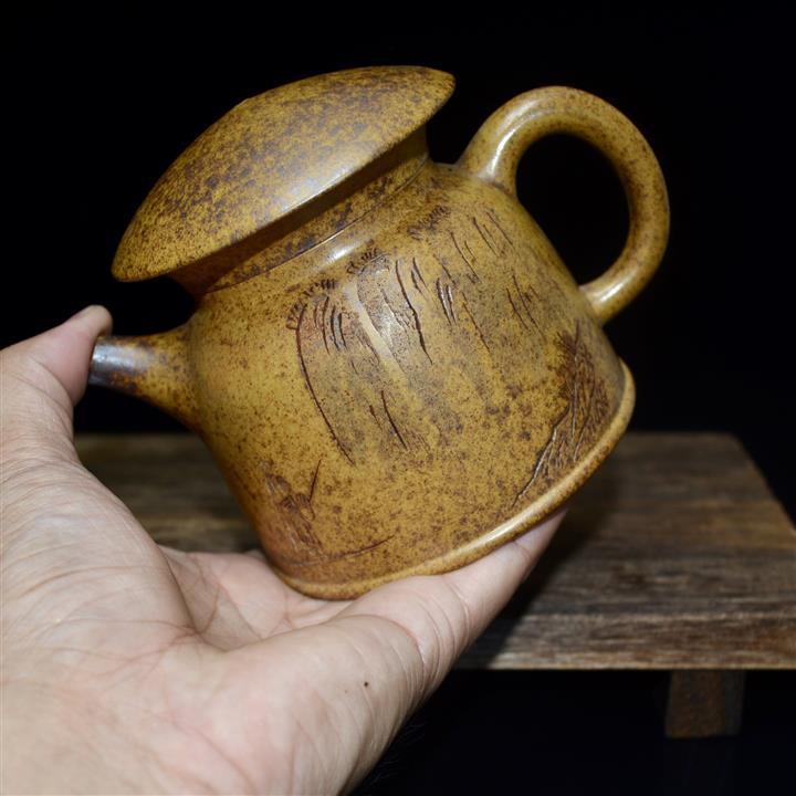 460cc原礦石紅泥滿刻鐘鳴山河茶壺POT8402