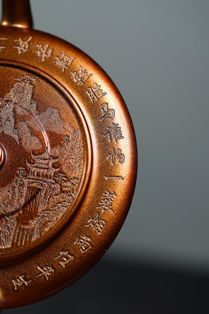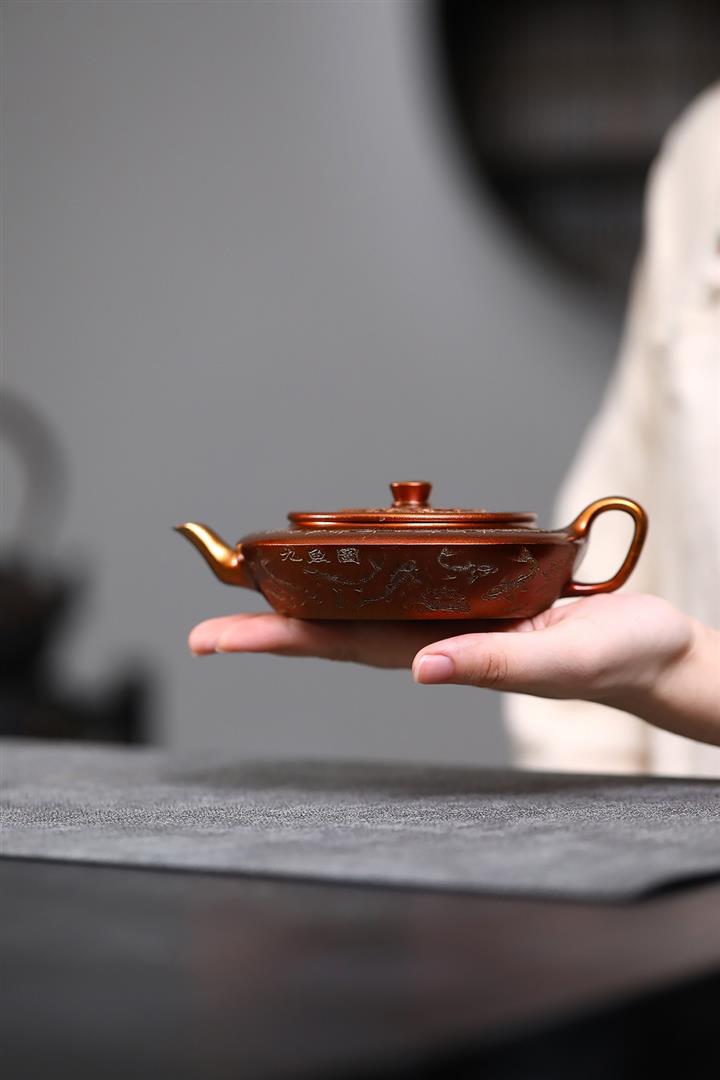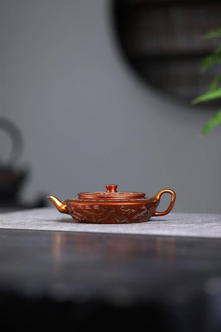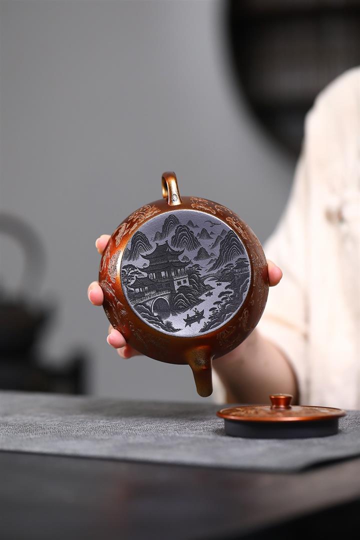 320cc原礦紅皮龍刻繪山水秦權泡茶壺POT8411