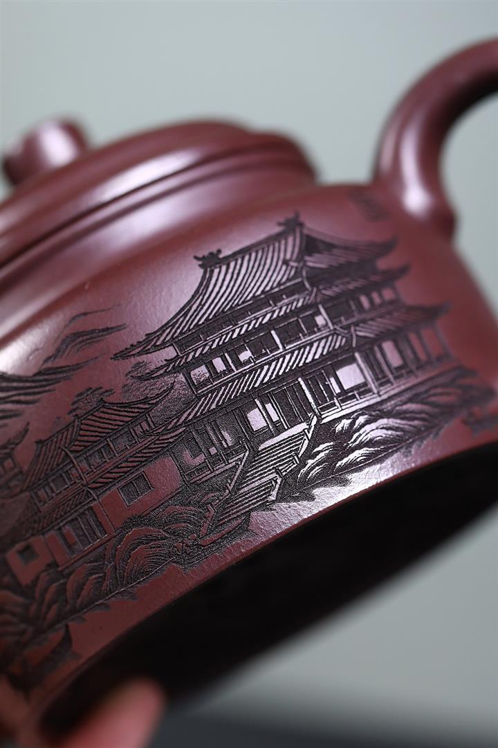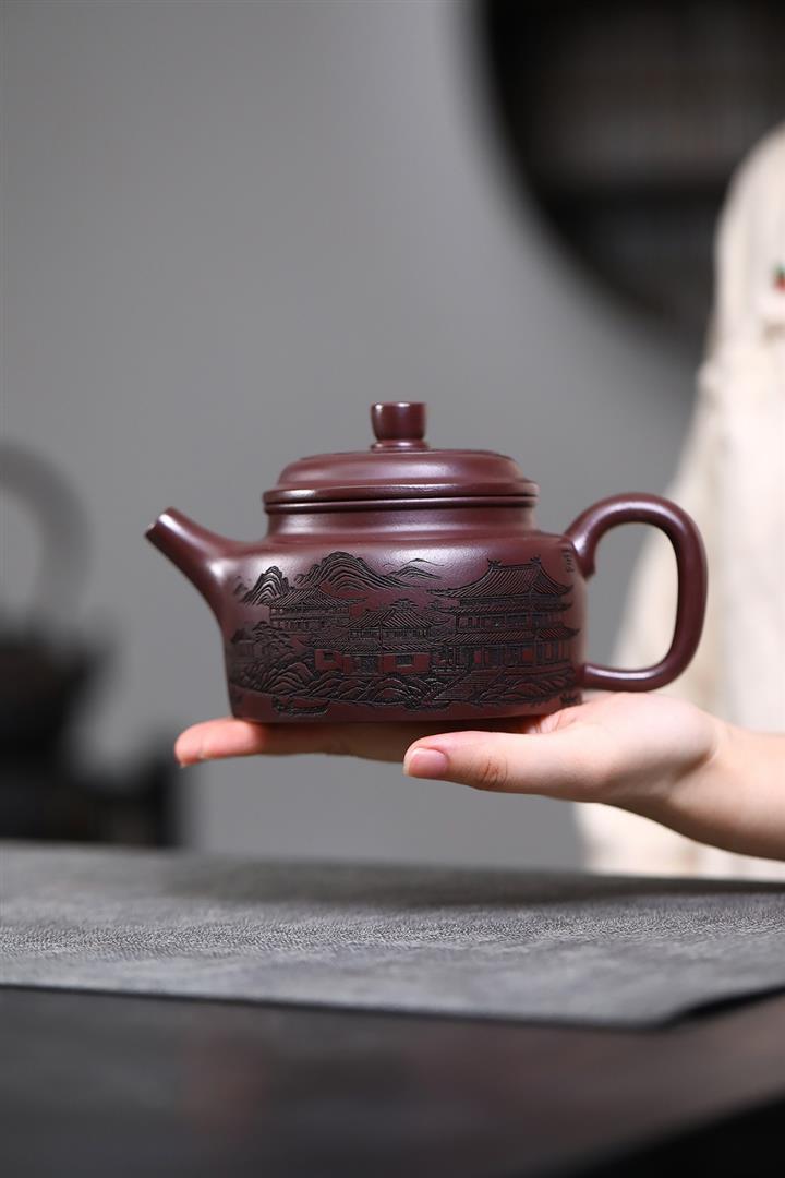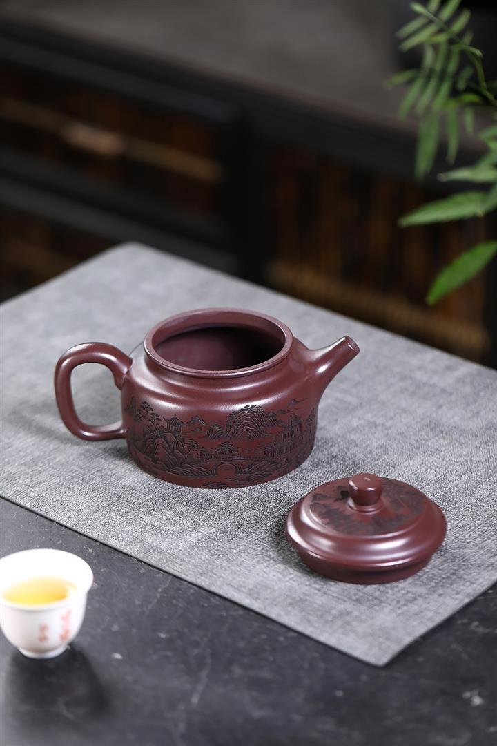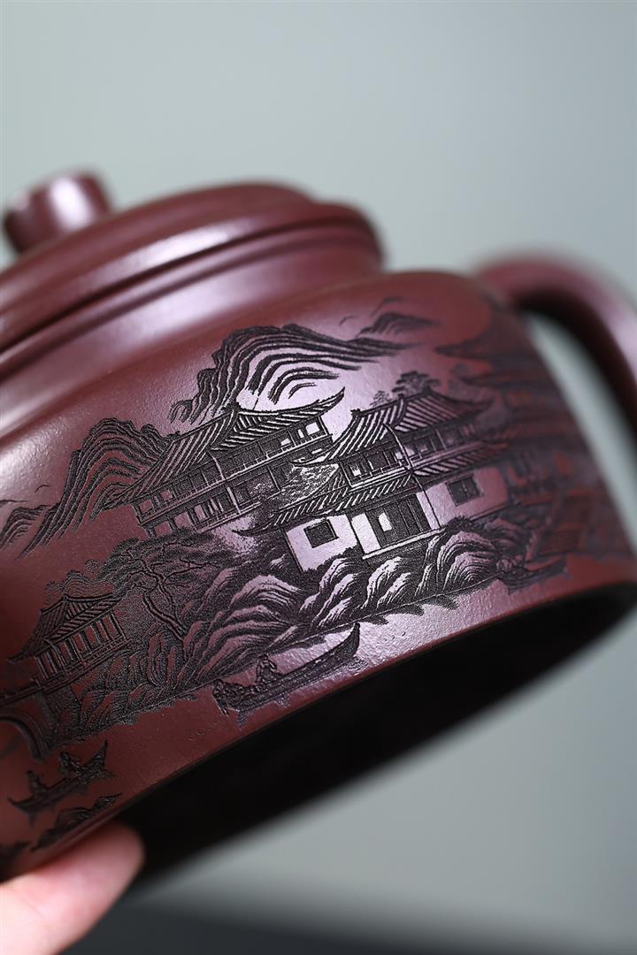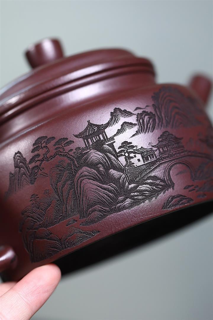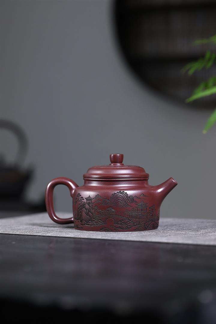 320cc原礦紅皮龍刻繪山水秦權泡茶壺POT8411