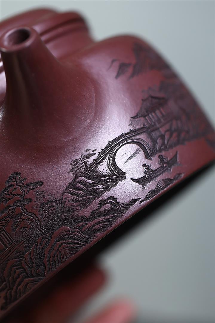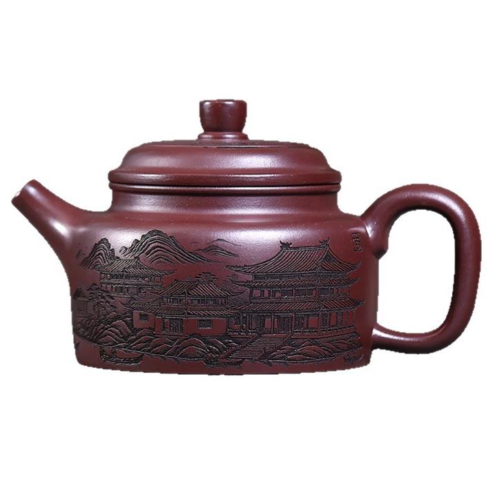 320cc原礦石紅泥滿刻桃源西施茶壺POT8404