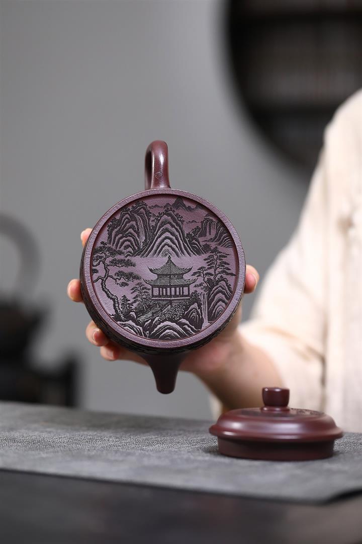 460cc原礦石紅泥滿刻鐘鳴山河茶壺POT8402