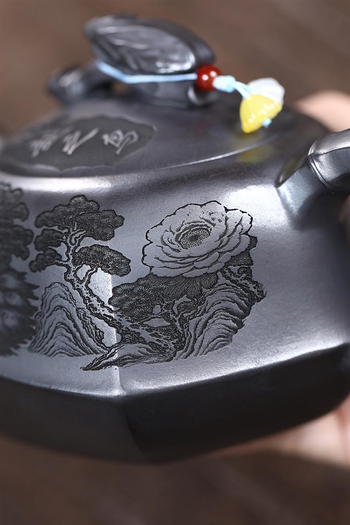 300cc原礦紫泥泥繪山水德鐘泡茶壺POT8413