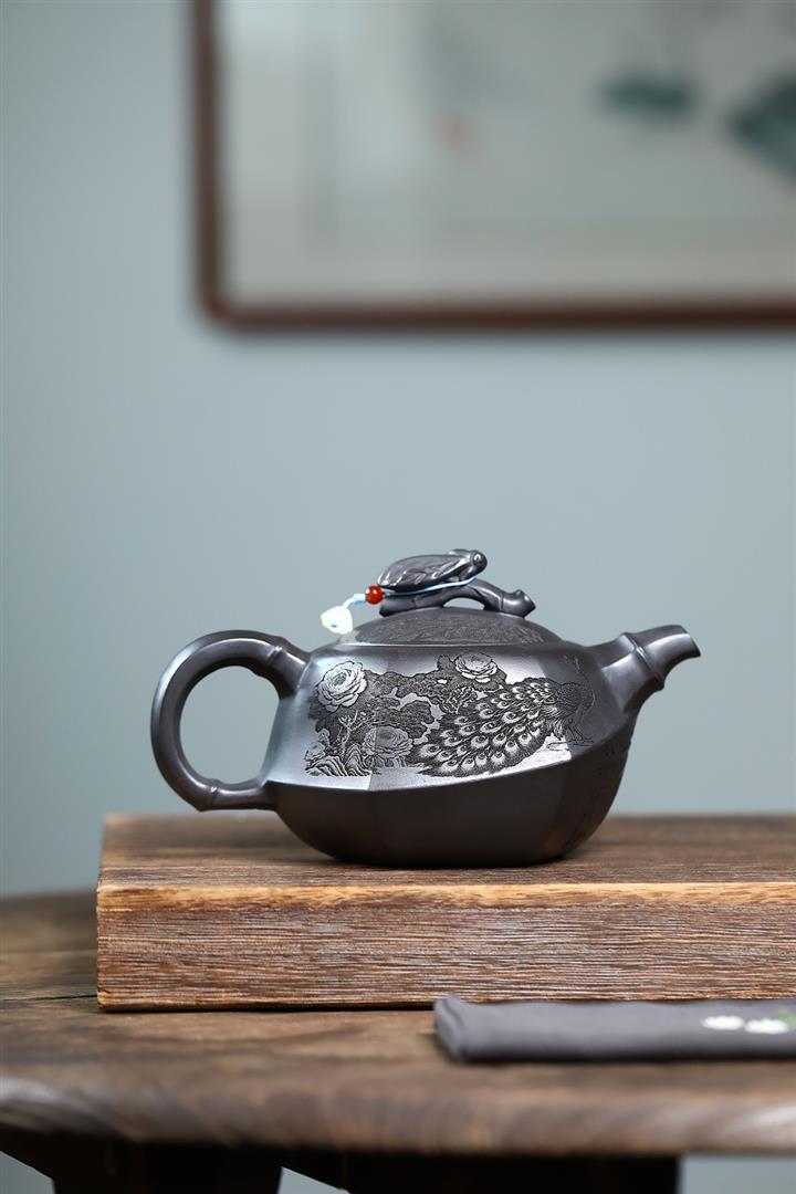 260cc原礦段泥柴燒花鳥合歡泡茶壺POT8410