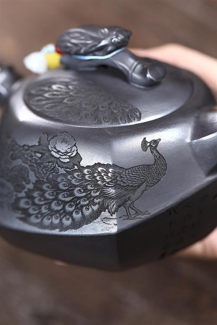 250cc原礦石黃泥滿刻桃源仙居茶壺POT8406