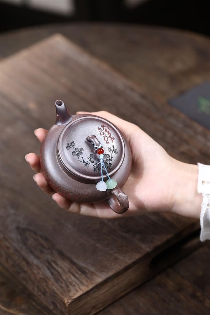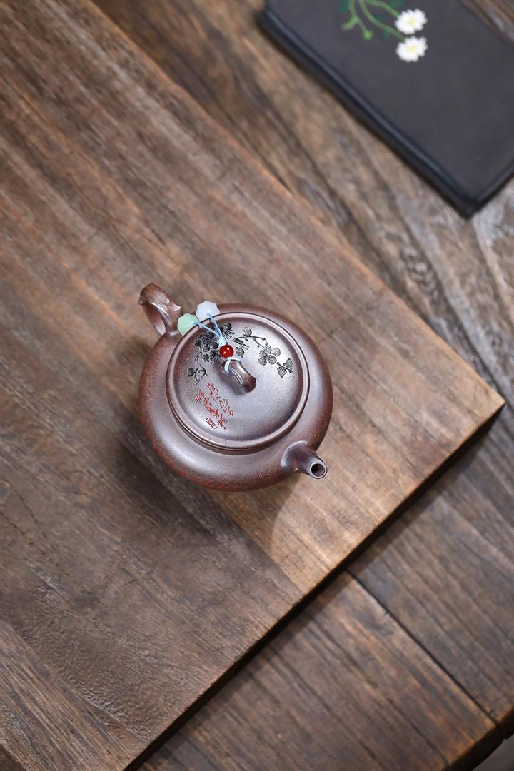 160cc原礦柴燒胭脂段泥疏影暗香茶壺POT8408