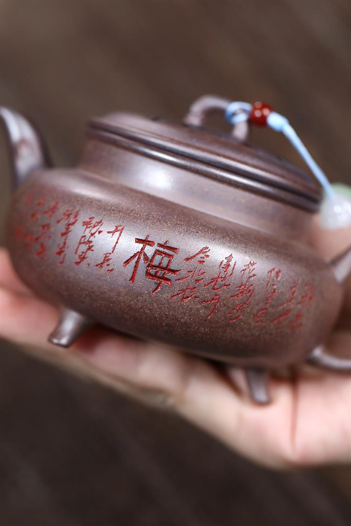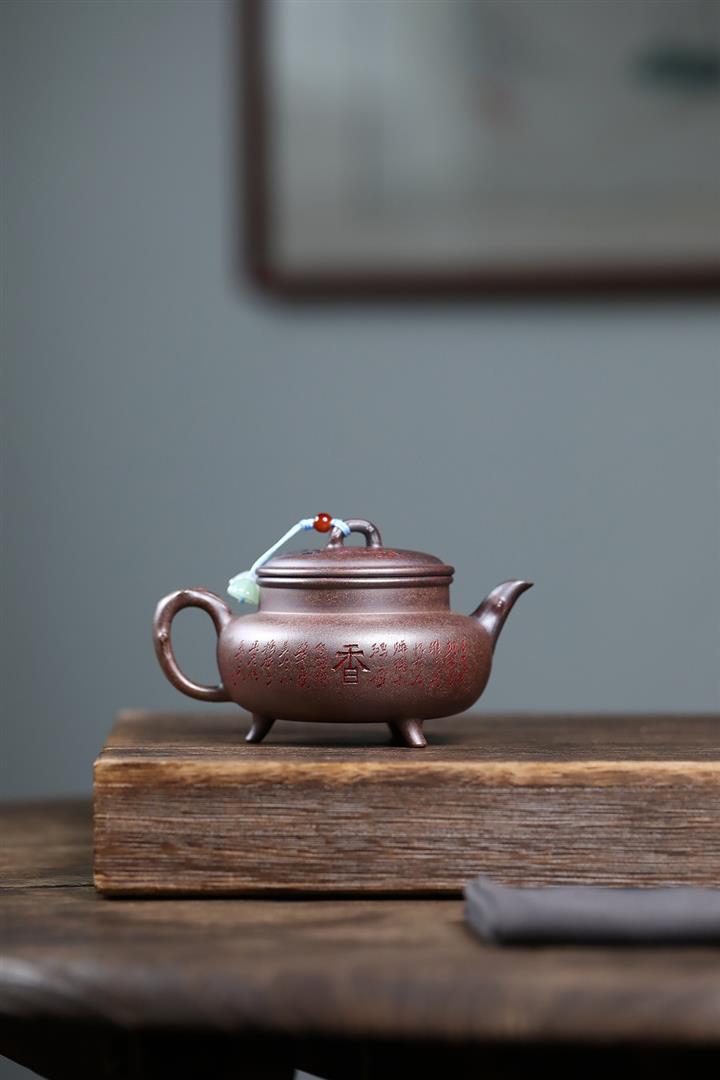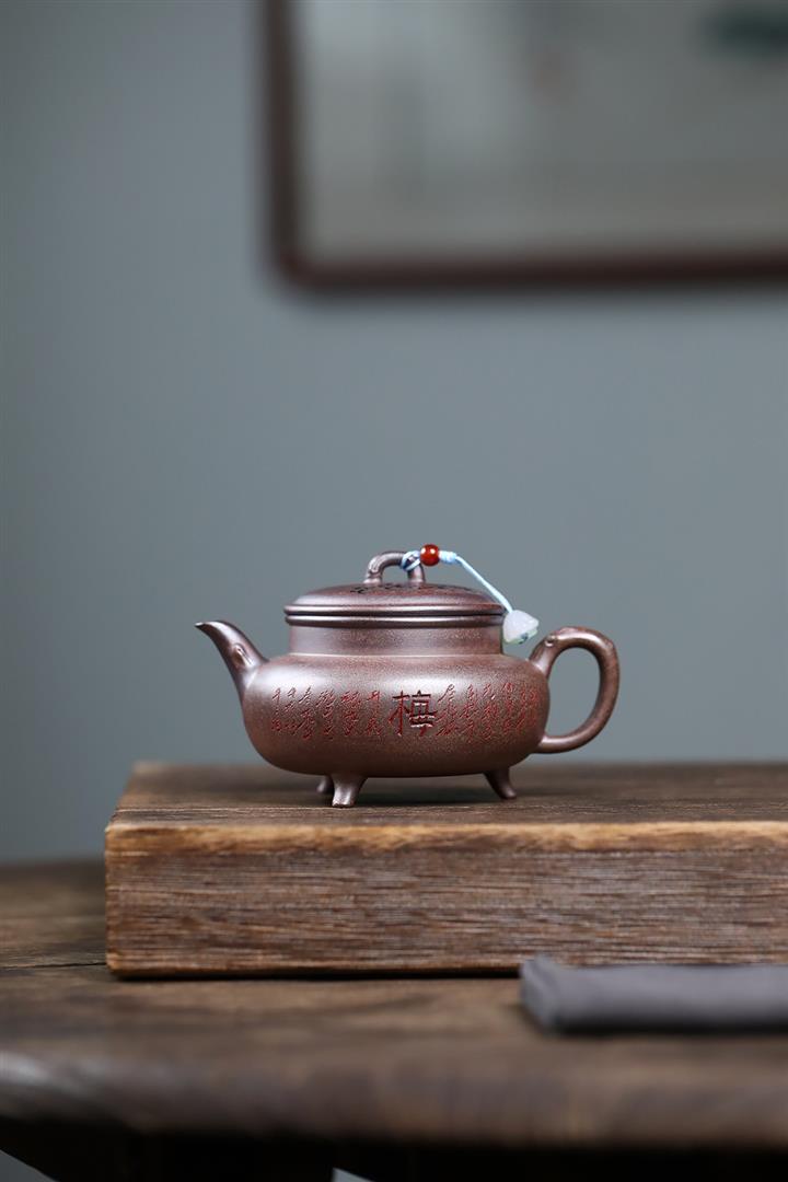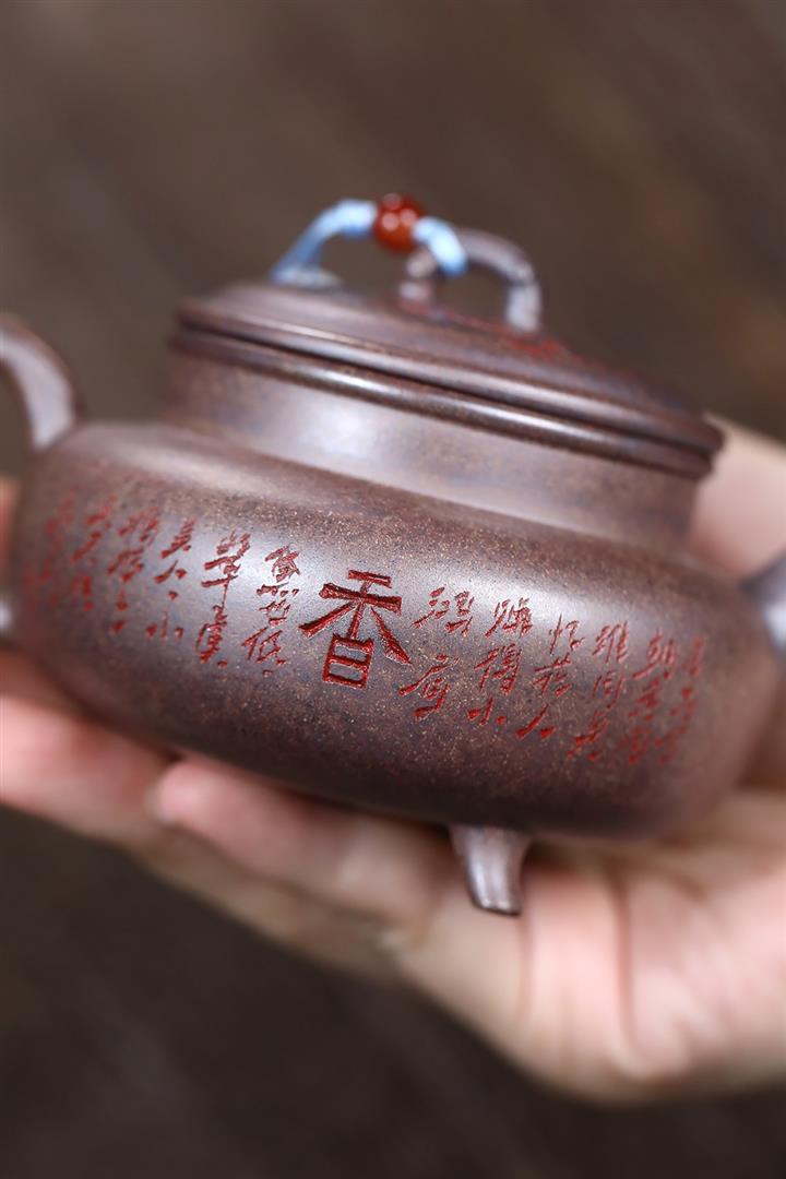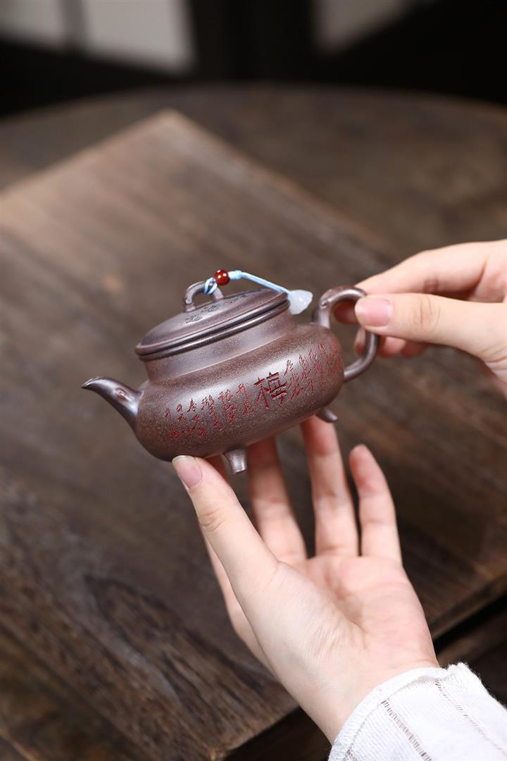 320cc原礦紅皮龍刻繪山水秦權泡茶壺POT8411