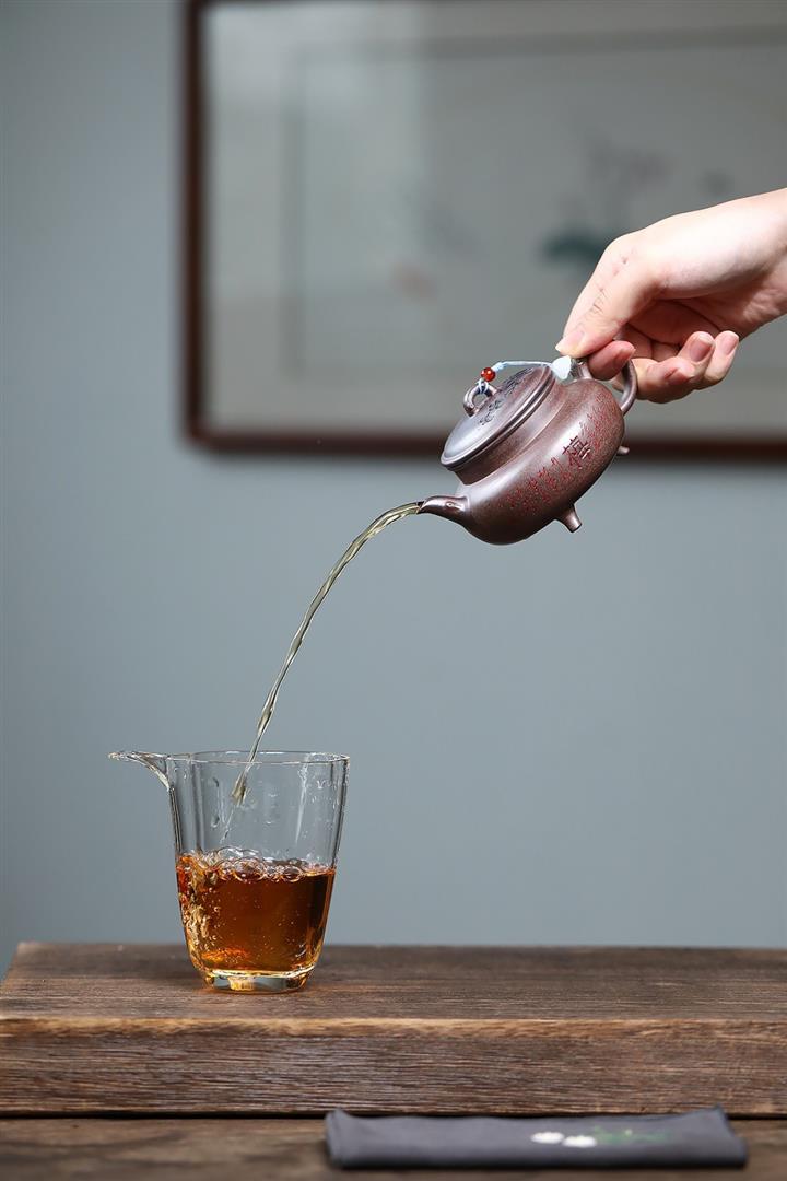 【泥料特點】砂土氣重,似淳實農民,日久使用,漸露鋒芒,養成變化,溫潤莊重。紫砂是壹種雙重氣孔結構的多孔性材質,氣孔微細,密度高。用紫砂壺沏茶,不失原味,且香不渙散,得茶之真香真味。紫砂使用越久,壺身色澤越發光亮照人,氣韻溫雅。紫砂壺長久使用器身會因撫摸擦拭,變得越發溫潤光澤。