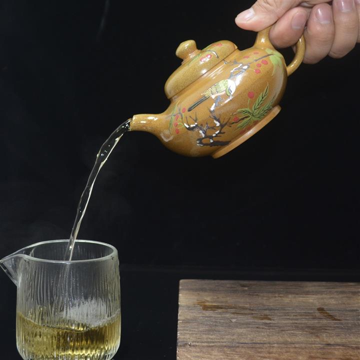 【泥料特點】砂土氣重,似淳實農民,日久使用,漸露鋒芒,養成變化,溫潤莊重。紫砂是壹種雙重氣孔結構的多孔性材質,氣孔微細,密度高。用紫砂壺沏茶,不失原味,且香不渙散,得茶之真香真味。紫砂使用越久,壺身色澤越發光亮照人,氣韻溫雅。紫砂壺長久使用器身會因撫摸擦拭,變得越發溫潤光澤。