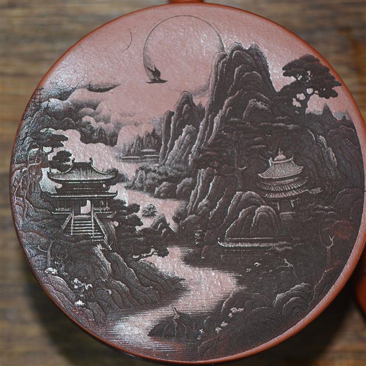 300cc原礦紫泥泥繪山水德鐘泡茶壺POT8413