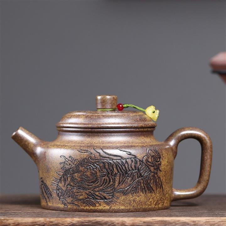 320cc原礦紅皮龍刻繪山水秦權泡茶壺POT8411